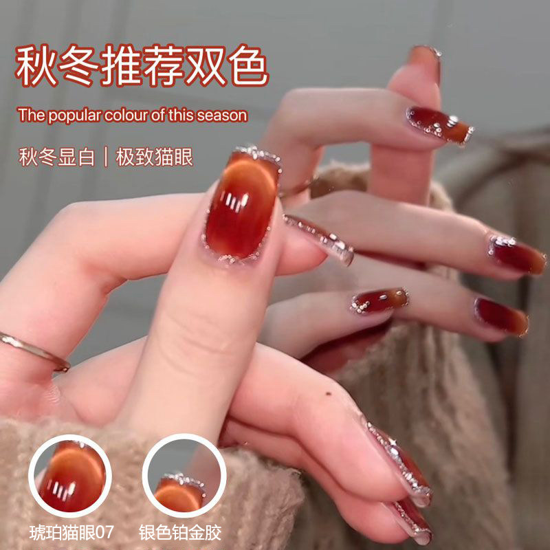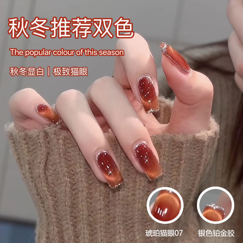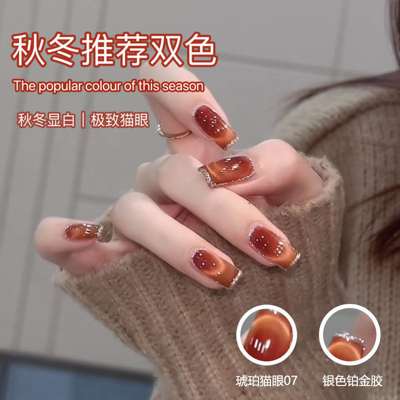 📚 秋冬琥珀猫眼甲油胶套装2025新款网红金光晶石猫眼棕色美甲店专用
