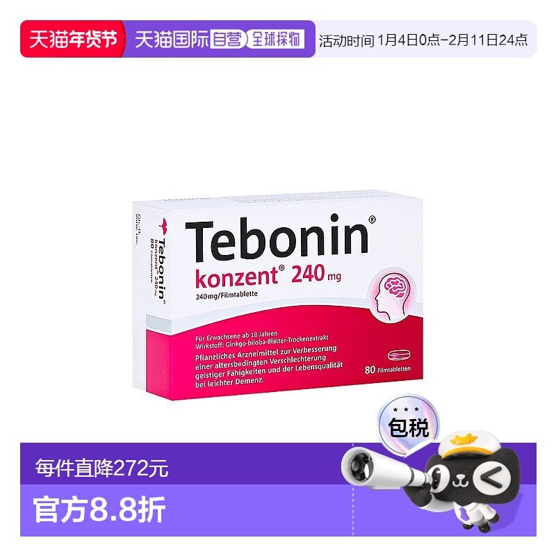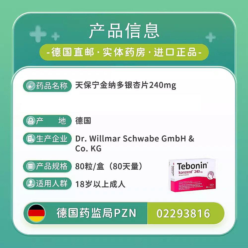 📚 自营|德国药房240mg高剂量银杏健忘耳鸣阿尔茨海默症痴呆80粒