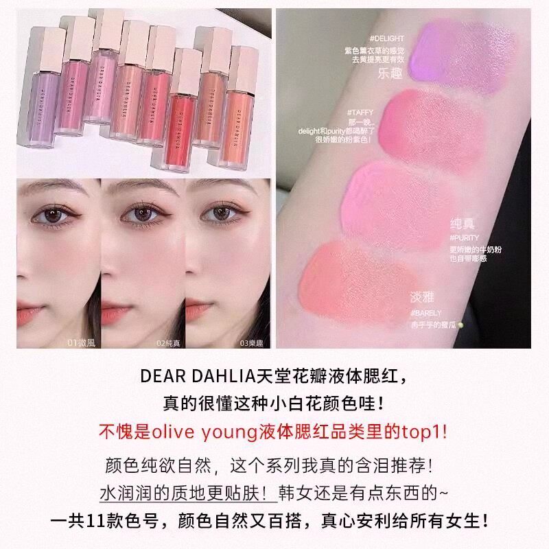 📚 韩国爆款Dear dahlia天国花瓣液体腮红barely奶油水光腮红peony