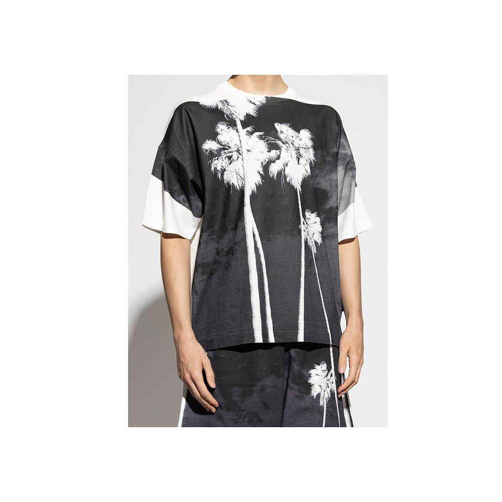 📚 香港直邮Palm Angels 棕榈天使 男士 圖案印花圓領 T 卹 PMAA10DF