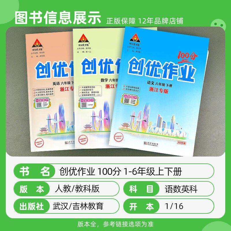📚 【浙江专版】2026春创优作业一百分小学一二三四五六年级下册语文数学英语科学人教版北师教科版同步专项练习册题课时作业本100分