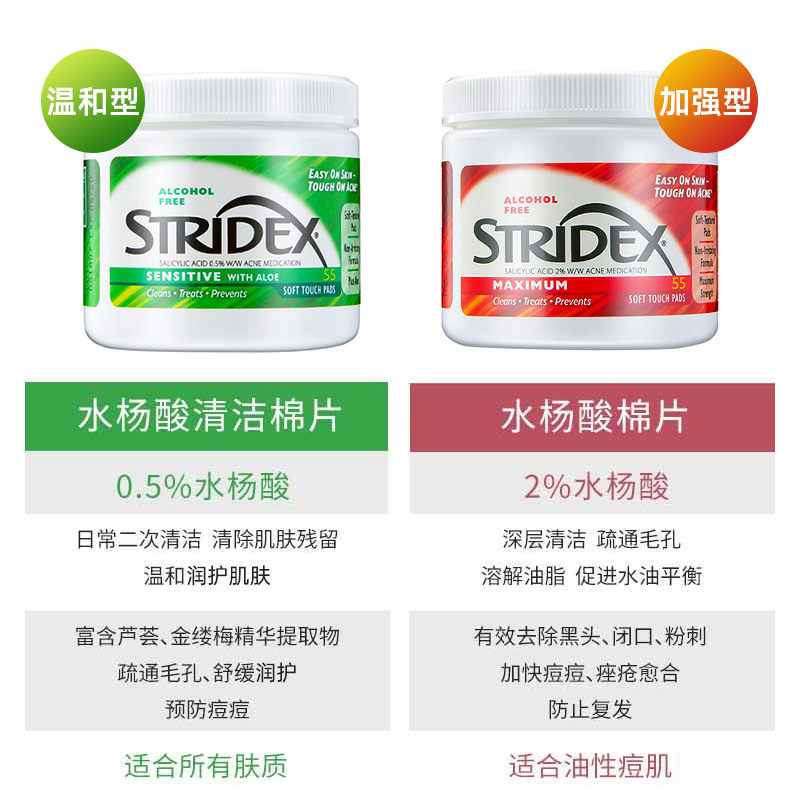 📚 stridex水杨酸棉片刷去闭口粉刺祛痘酸棉黑头清洁施颜适官方正品