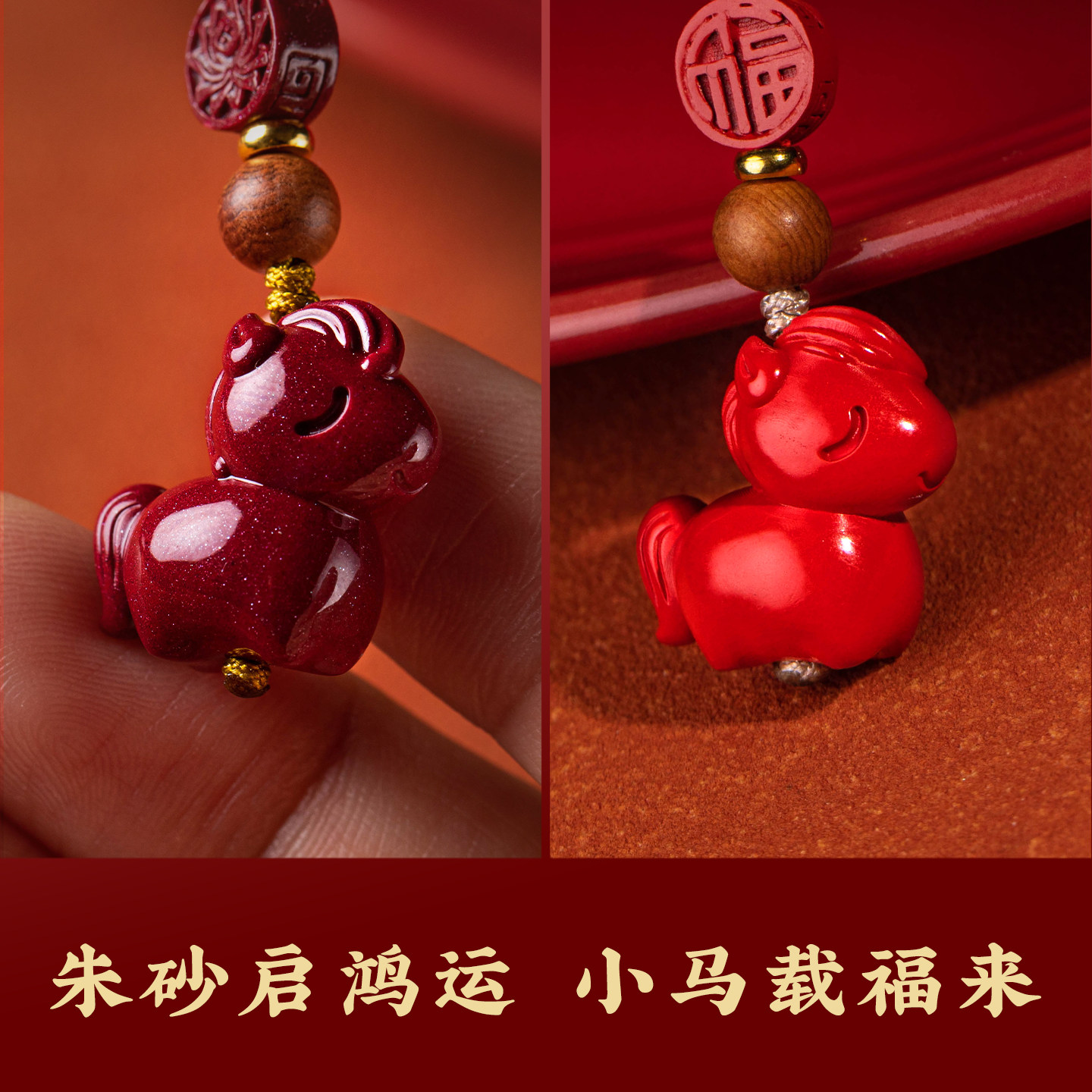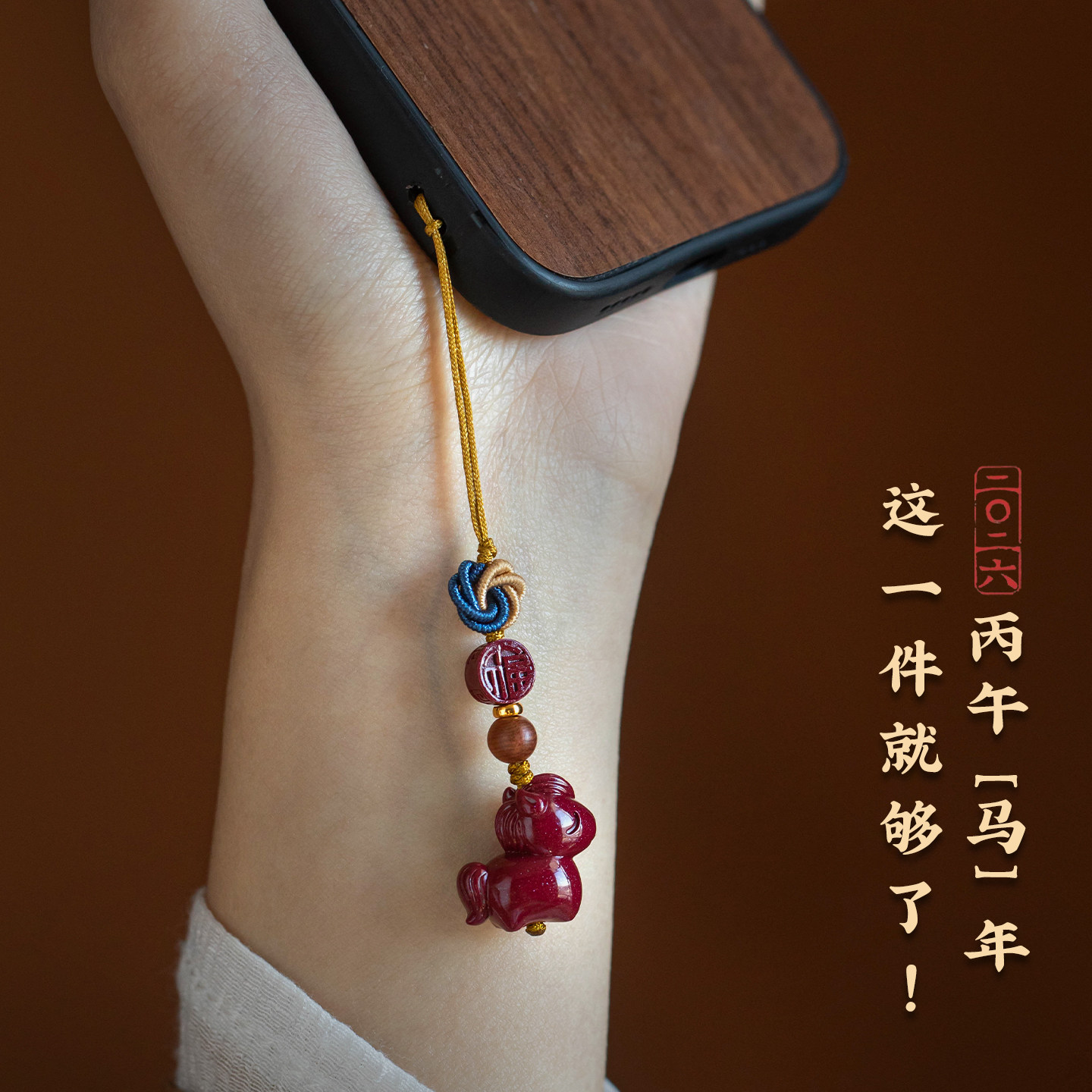 📚 2026马年本命年朱砂手机链小马福运朱砂手机挂件送朋友吊坠挂件