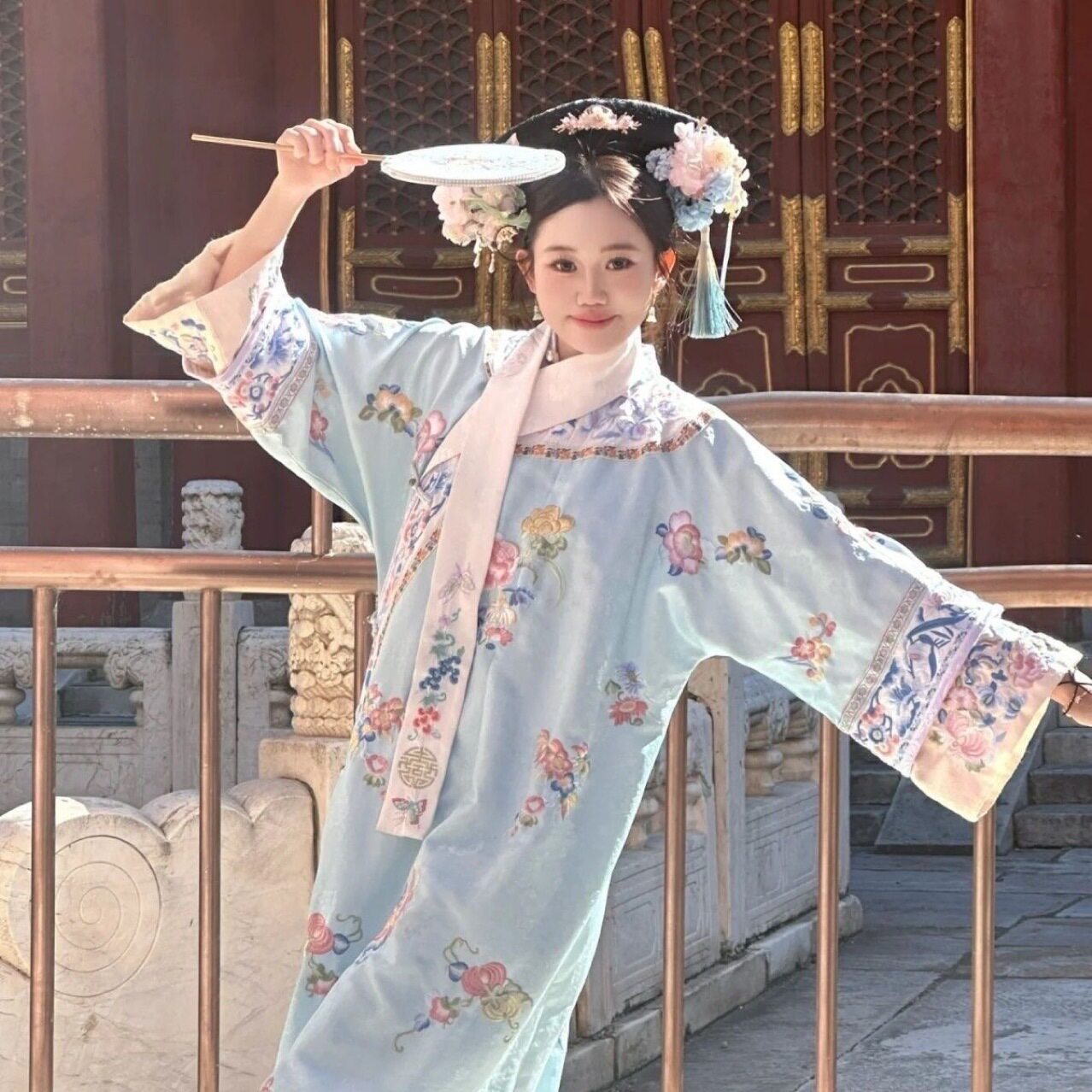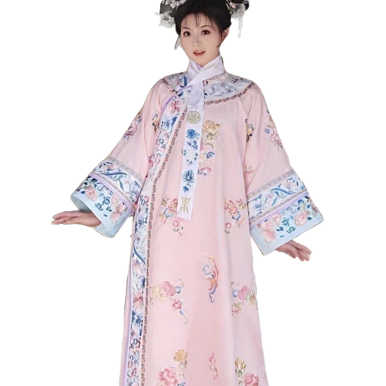 📚 女装汉服仿刺绣清代贵妃古装清朝服装印花氅衣中国格格旗装宫廷