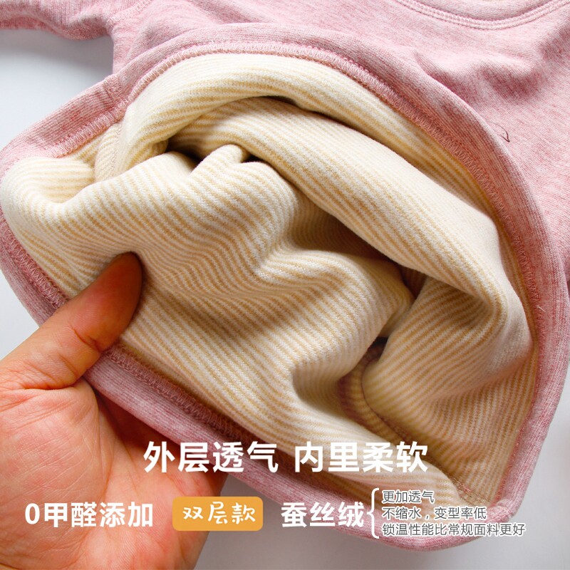 📚 蚕丝棉儿童保暖秋衣双层内搭单件上衣男童保暖女宝宝加厚打底衫冬