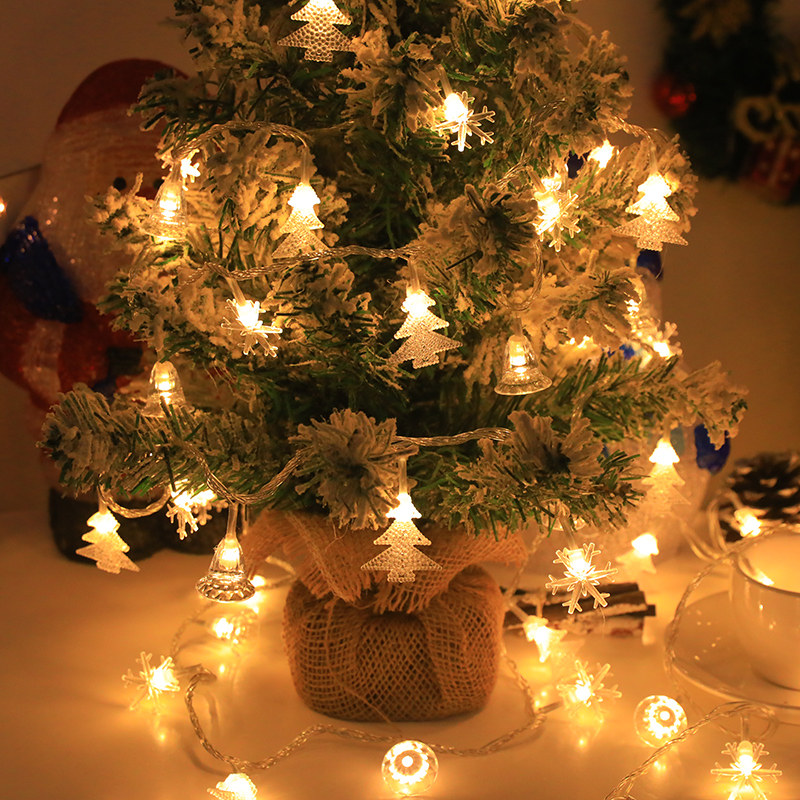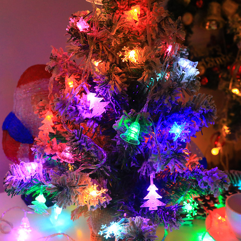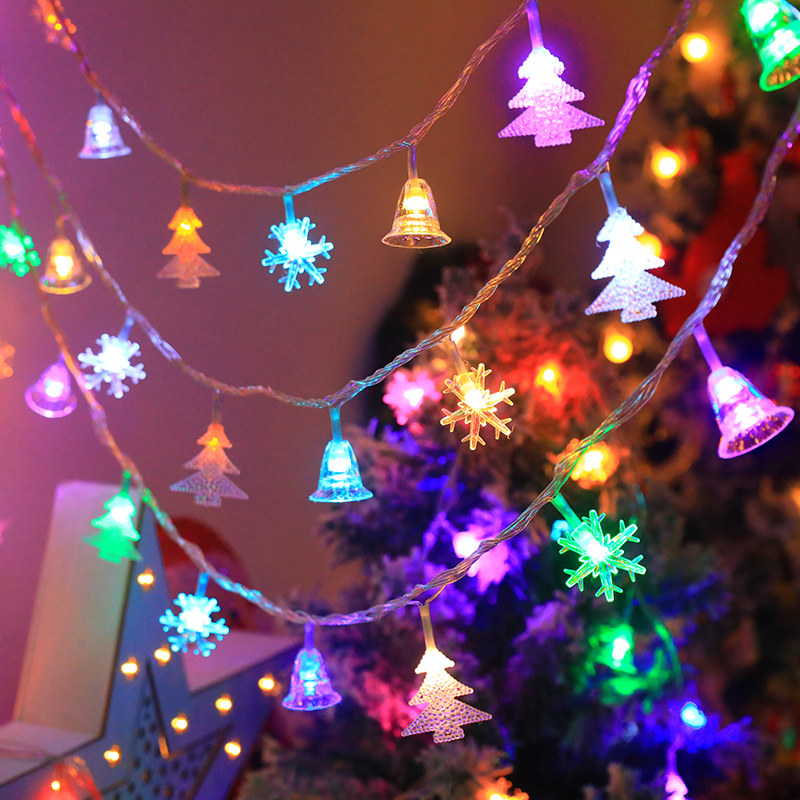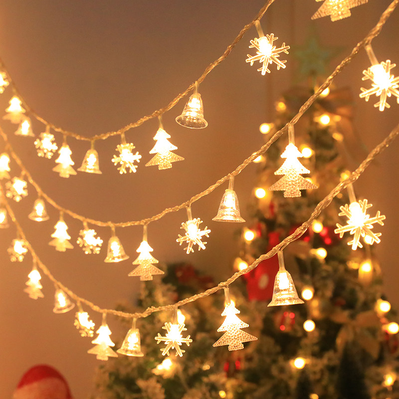 📚 圣诞节装饰灯雪花圣诞树铃铛灯串LED节日彩灯闪灯房间卧室装饰灯