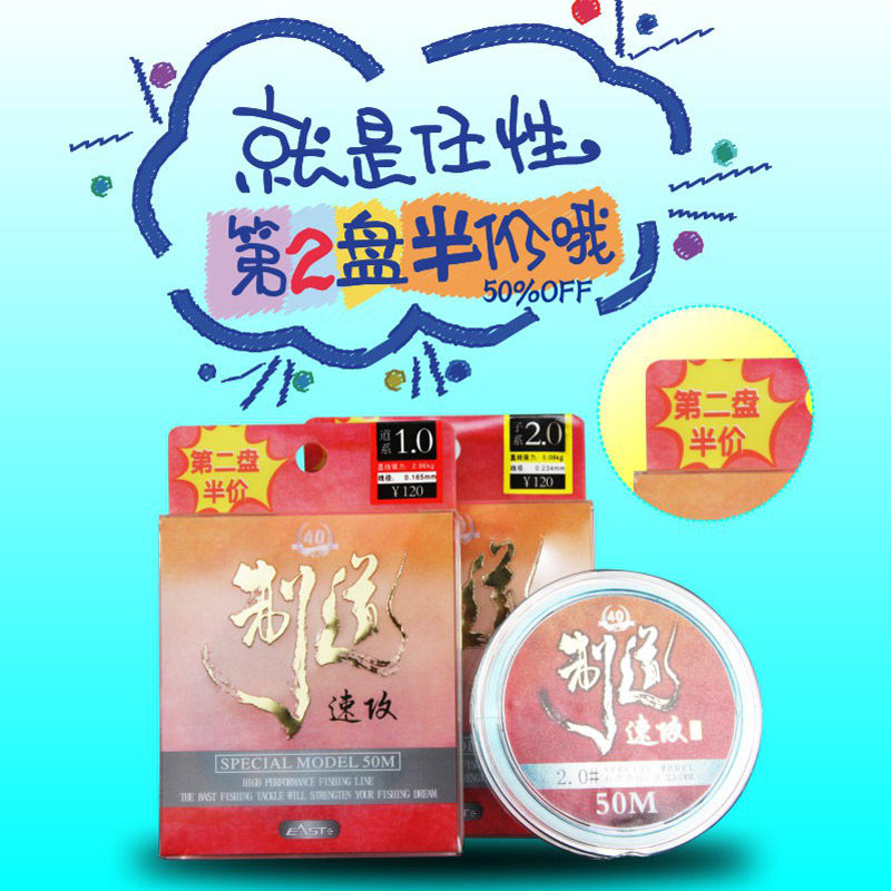 📚 东区钓鱼线制道速攻50米尼龙超强拉力超柔软第二盘半价渔线淡水线