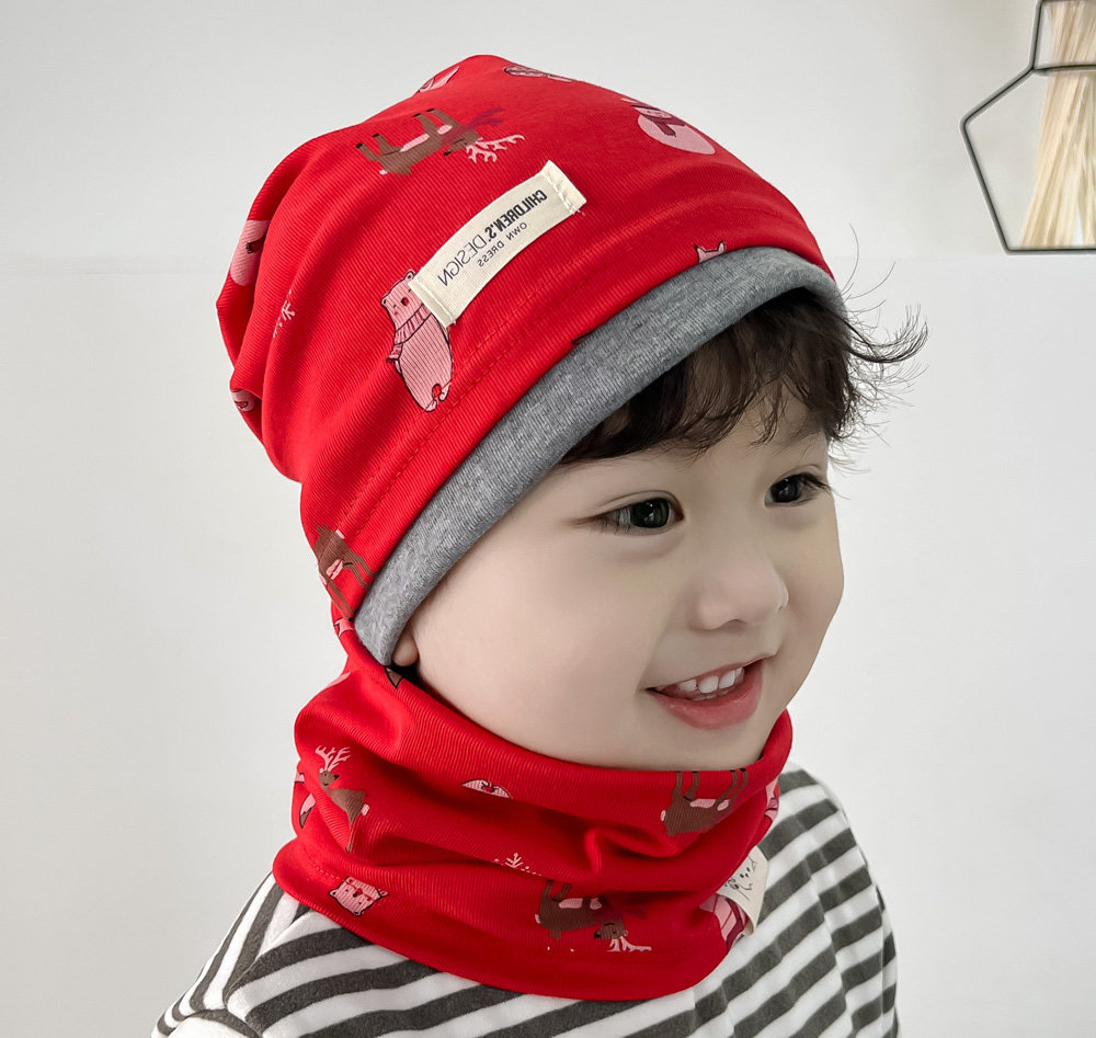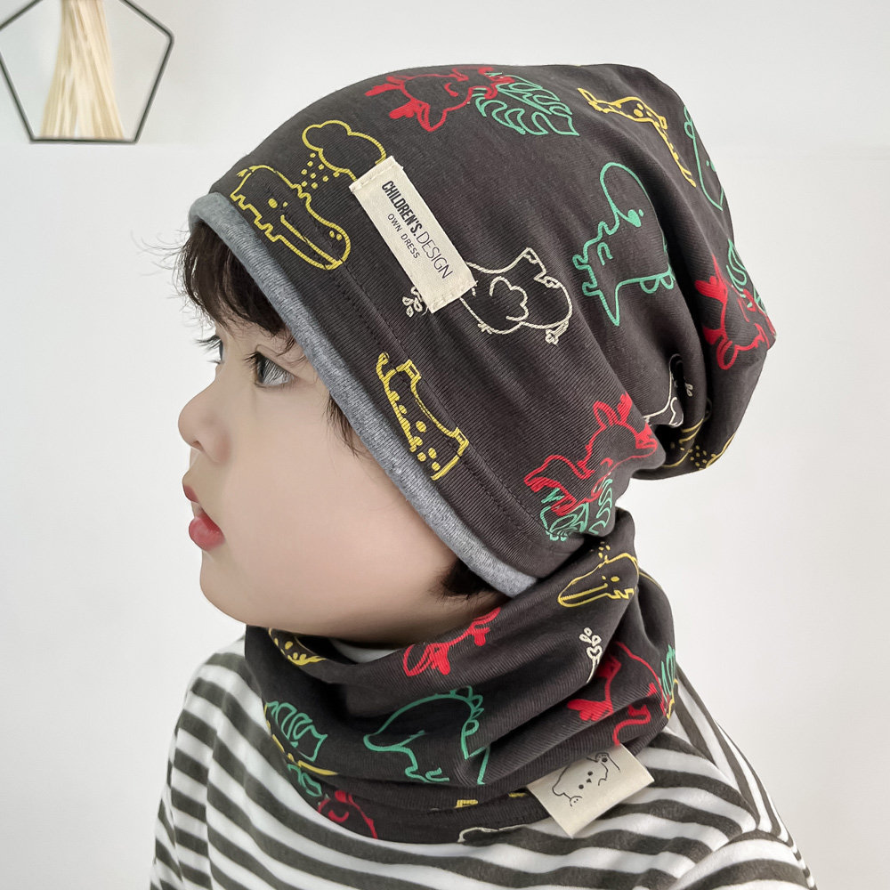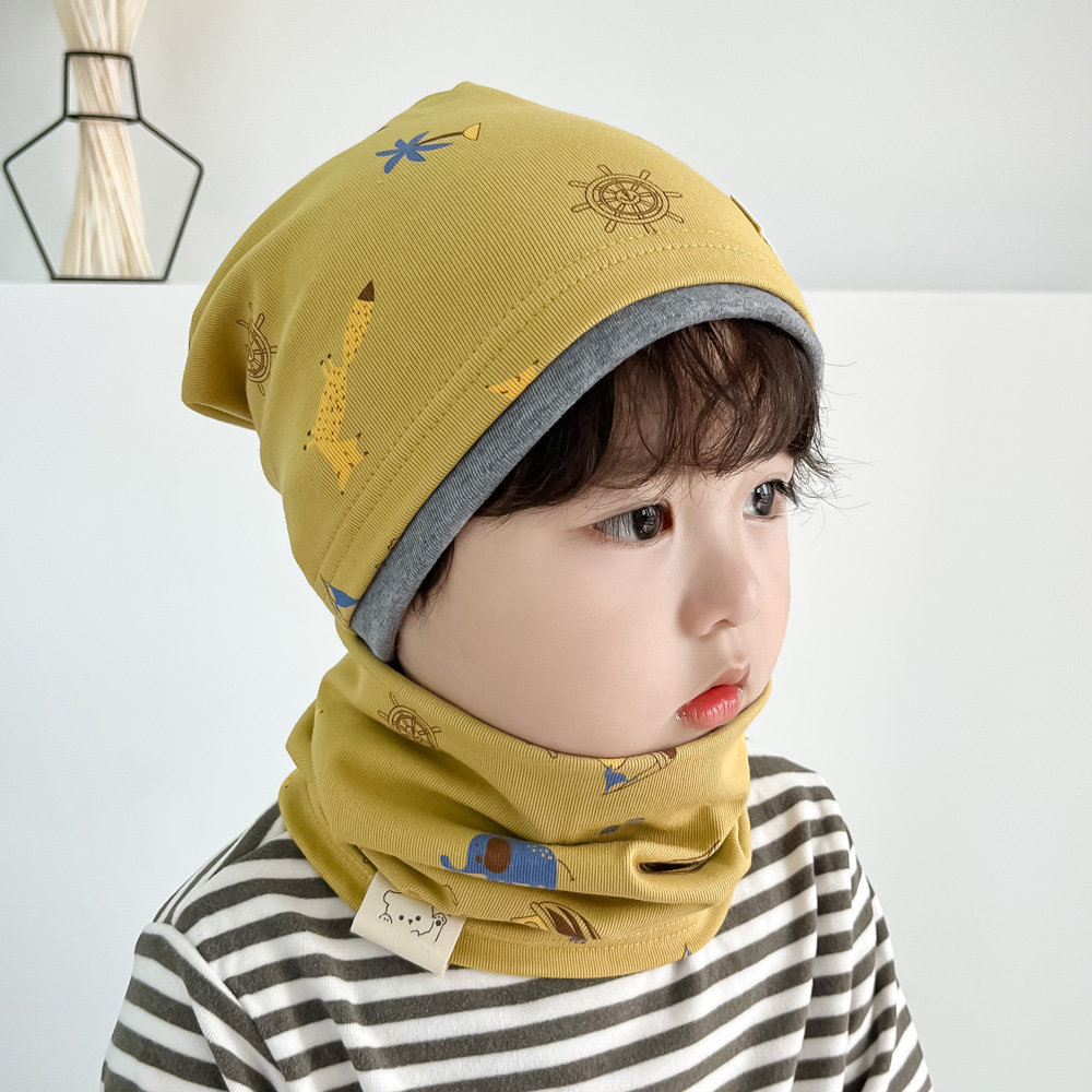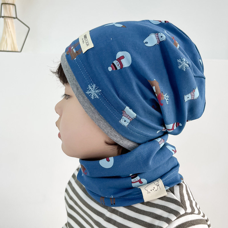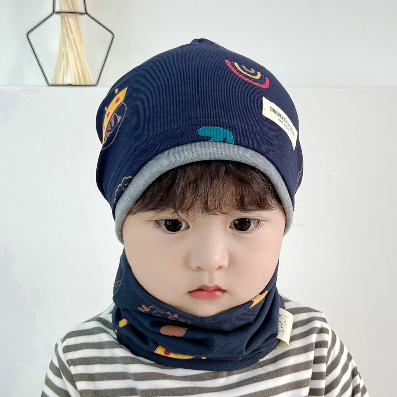 📚 纯棉男宝堆堆帽儿童防风帽子围脖秋冬女孩包头冷帽大童小朋友睡帽