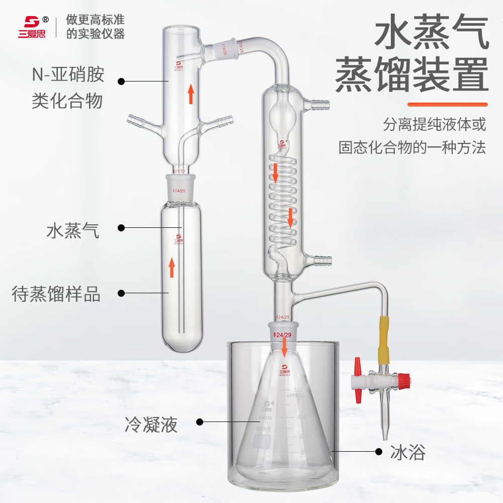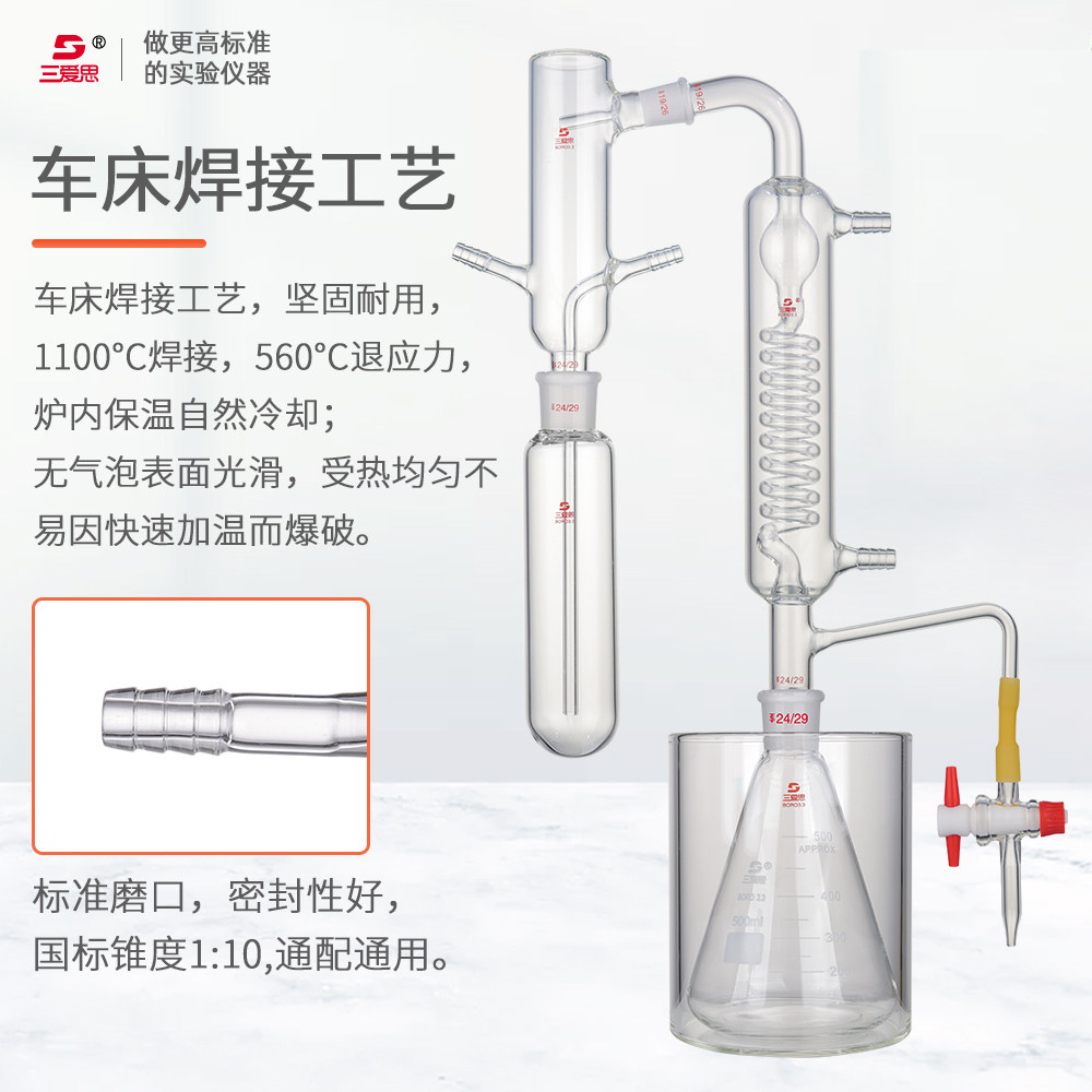 📚 三爱思 水蒸气蒸馏装置T72 挥发性植物精油蒸馏物提取反应器 冷凝水蒸汽发生装置 实验室高硼硅玻璃器材