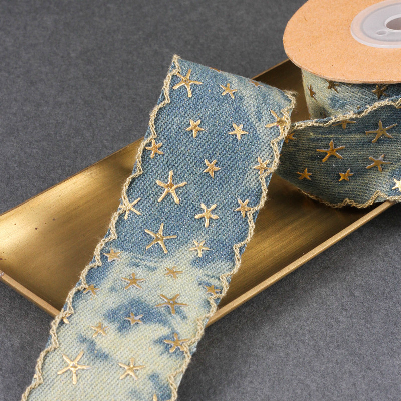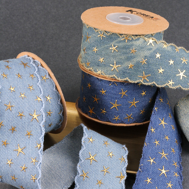 📚 芽边立体星星牛仔织带DIY蝴蝶结发饰创意礼品丝带演出服饰缎带