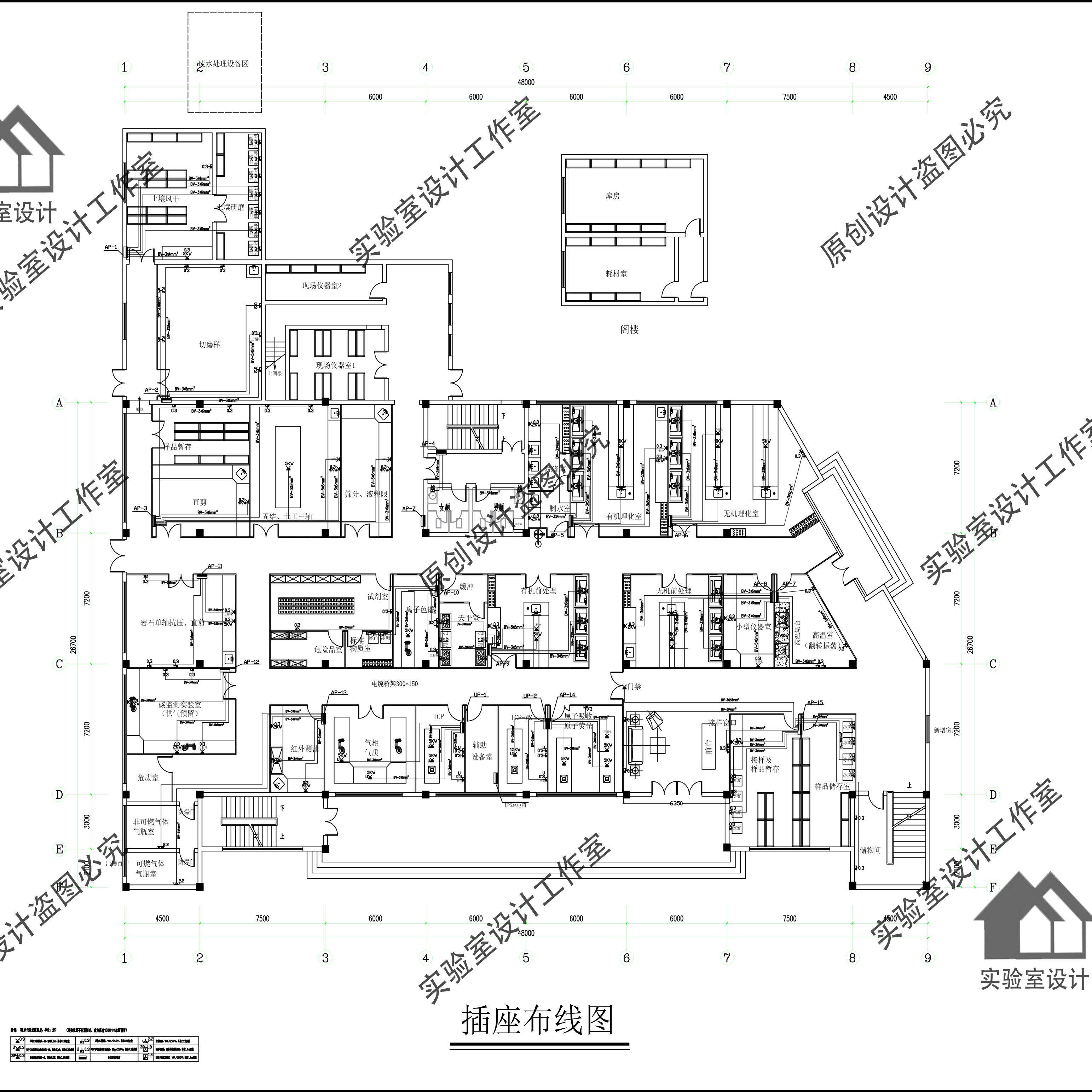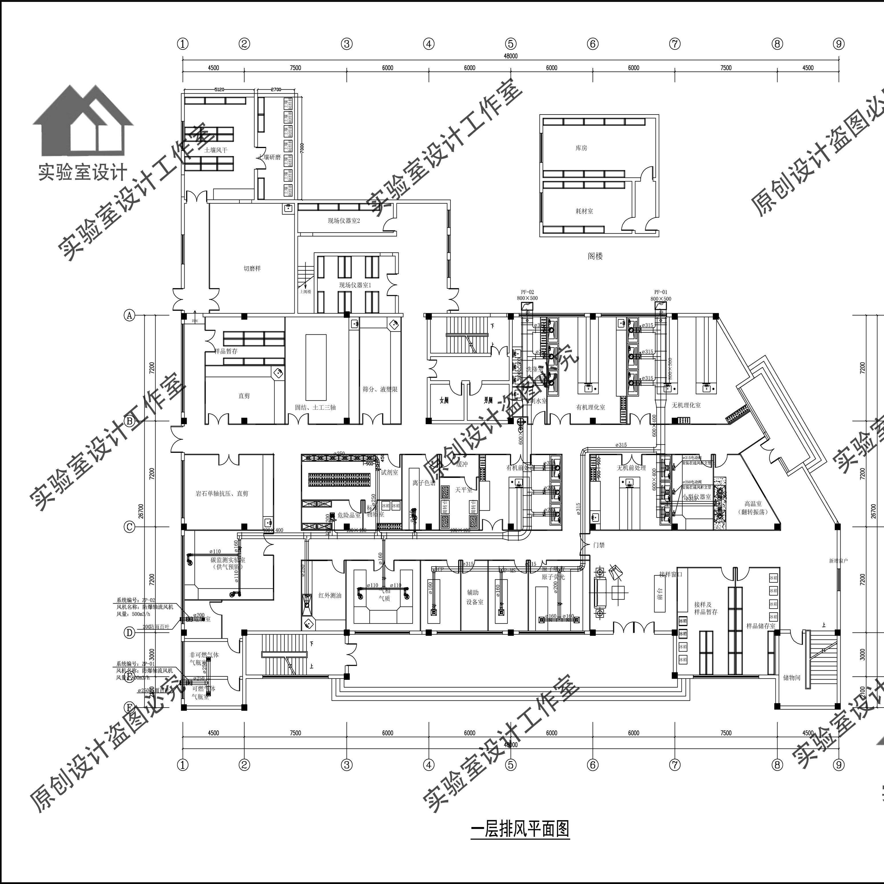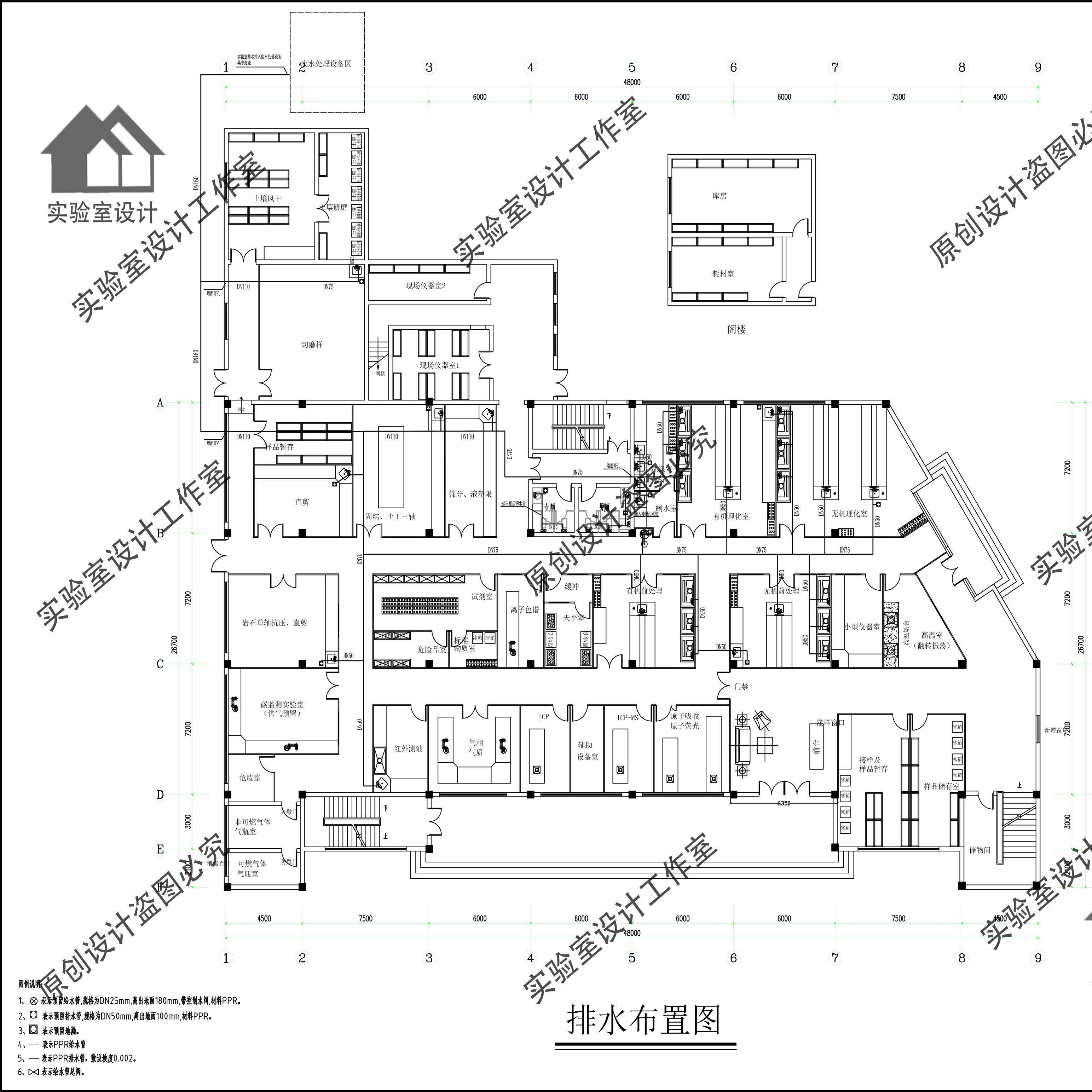 📚 检验检测实验室CAD施工图 装修 电气 给排水 通风系统集中供气