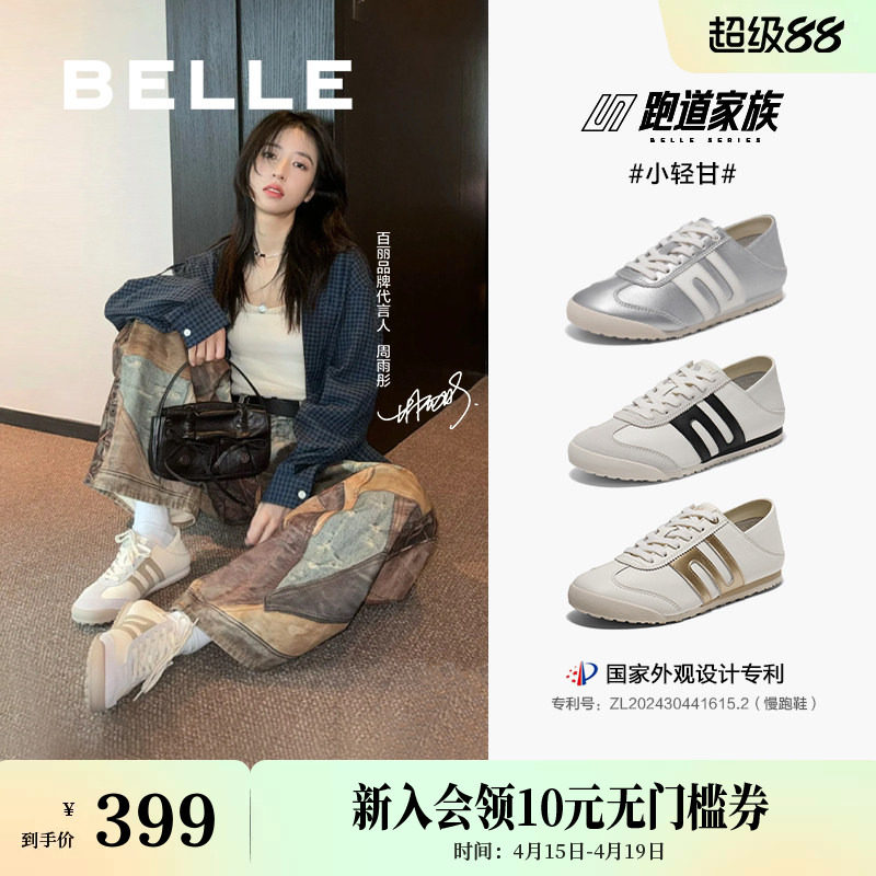 📚 张凌赫周雨彤同款百丽小轻甘2.0复古银色德训鞋男女款阿甘休闲预