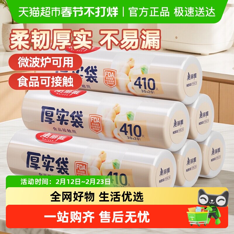 📚 美丽雅厚实加厚保鲜袋中号30*20cm点断平口家用厨房食品袋收纳袋