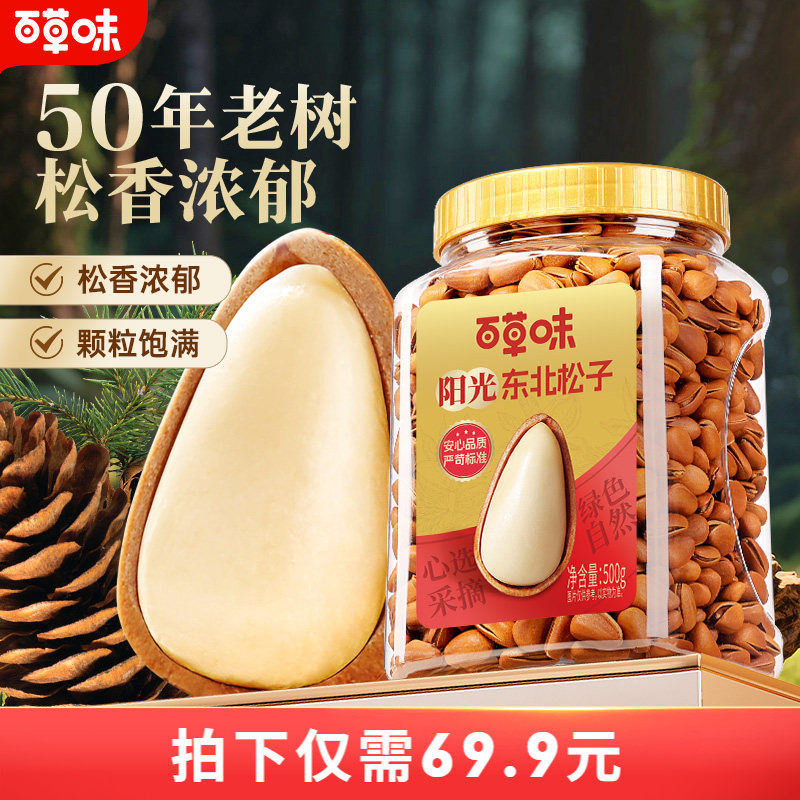 📚 百草味东北松子大颗粒500g手剥开口休闲零食干果送礼新货坚果休闲