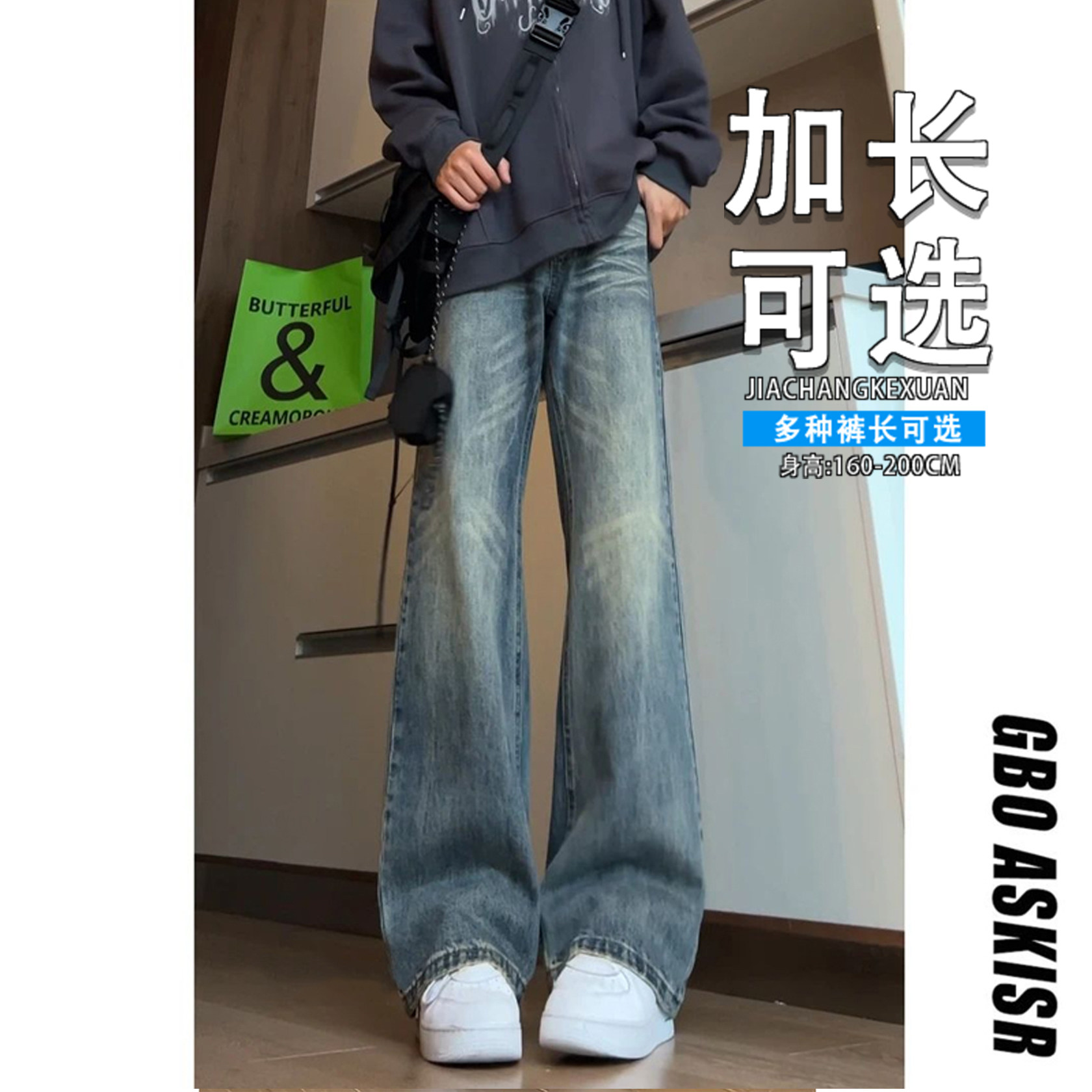 👖 高个子加长弯刀牛仔裤男款秋季宽松微喇裤