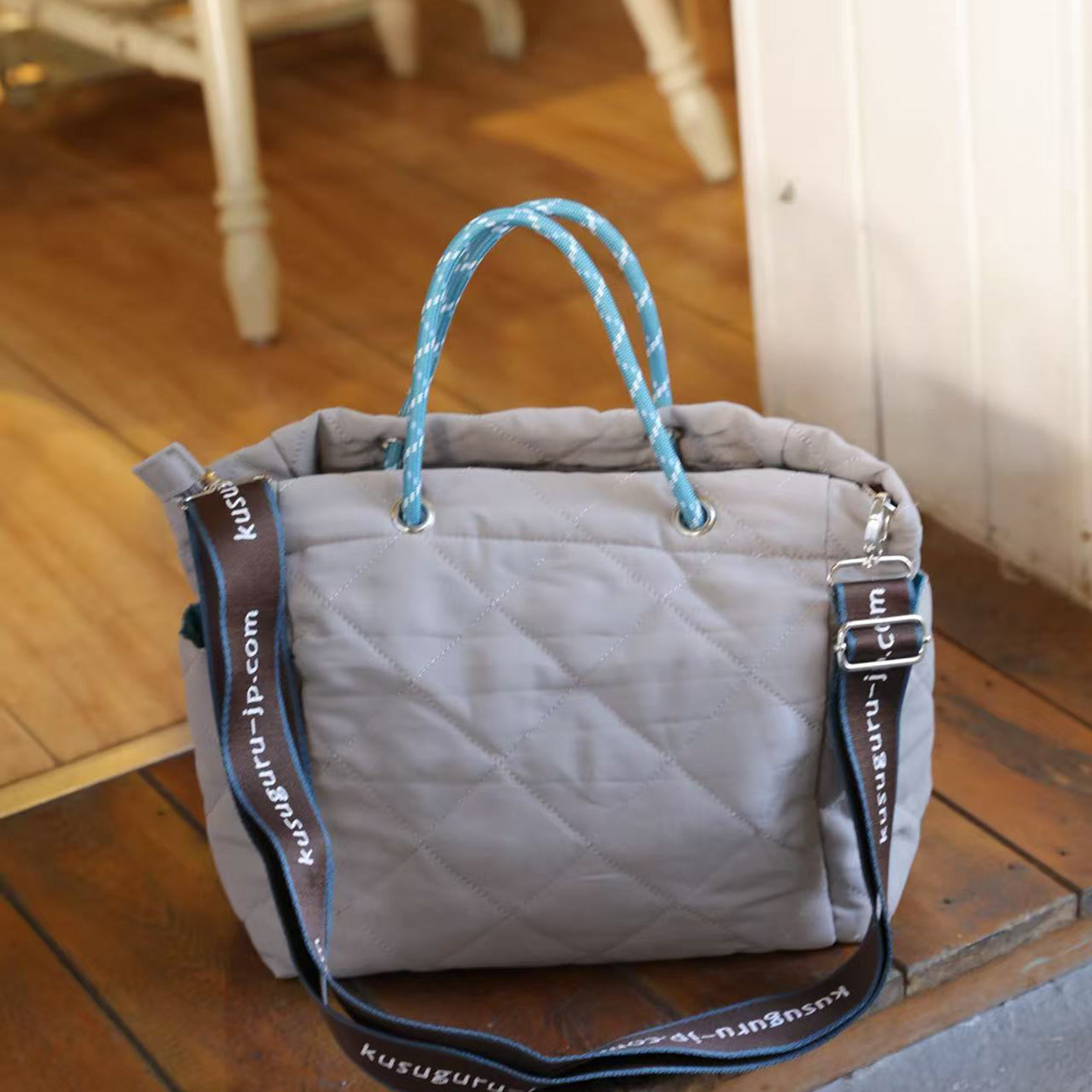 📚 秋冬氛围感 绗缝棉菱形格元宝包日本kusuguru正品斜挎包手提手拎