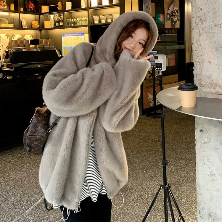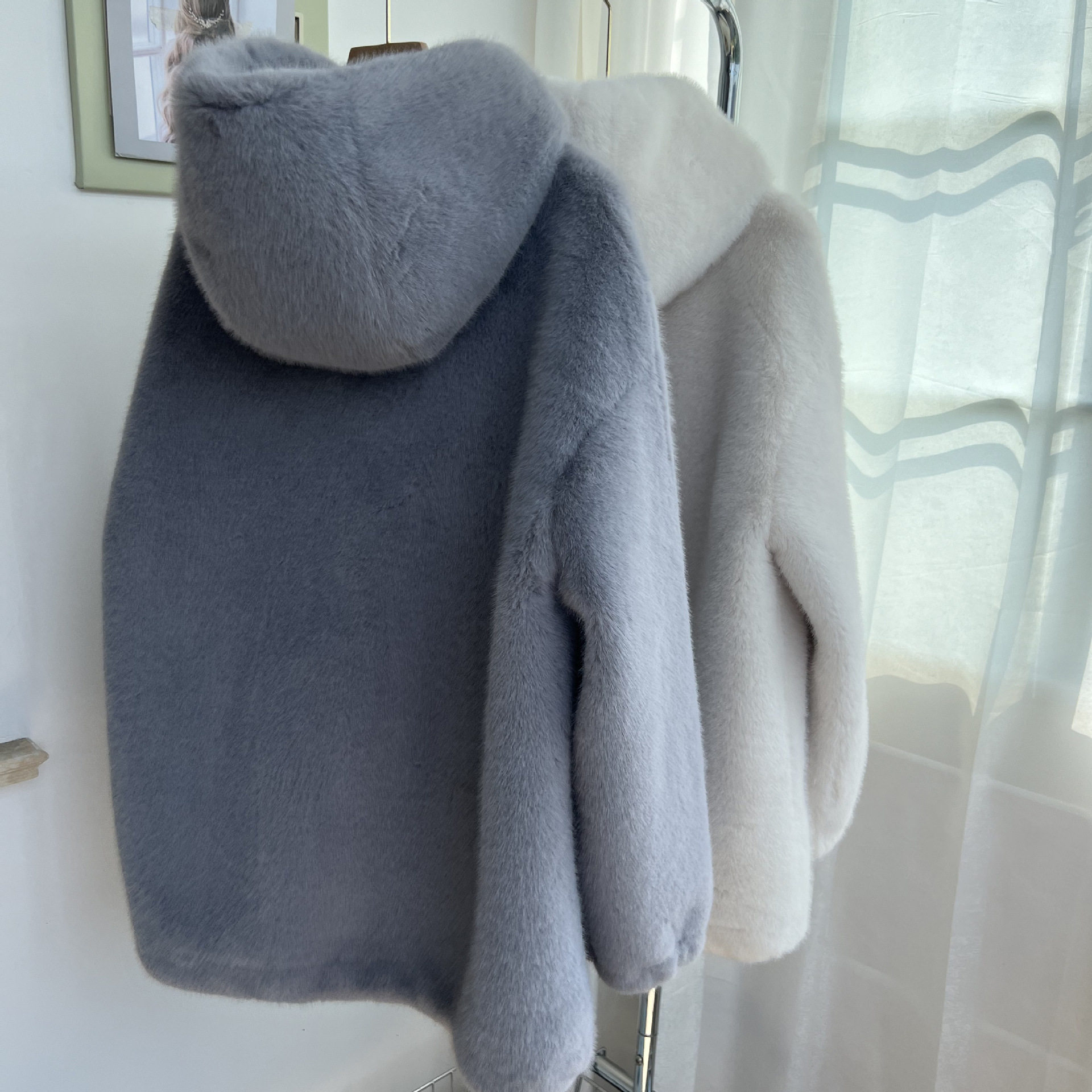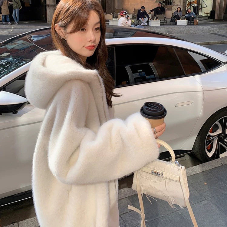 📚 今年流行特惠【矜贵千金】环保水貂毛中长款皮草外套女冬连帽皮毛