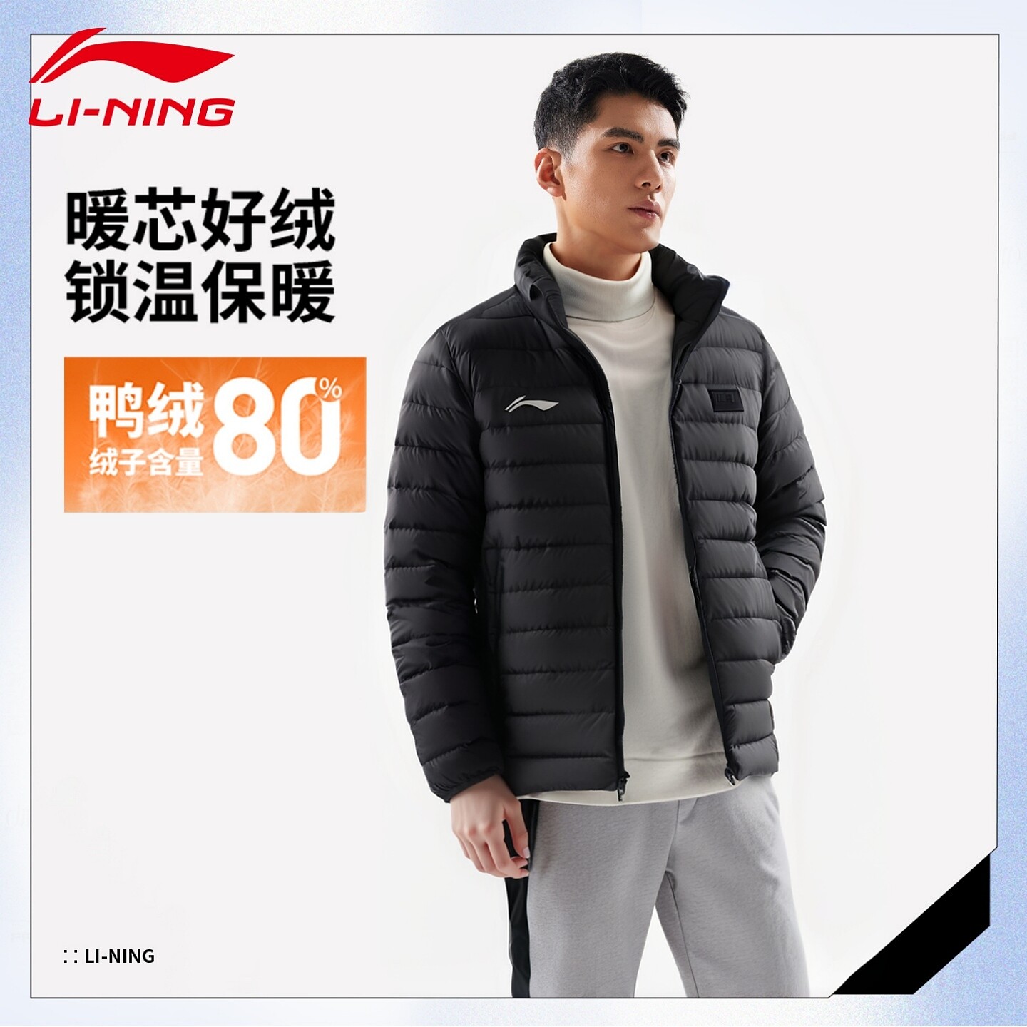📚 李宁国旗短款排骨羽绒服男冬季新品防风保暖休闲运动外套AYMV135