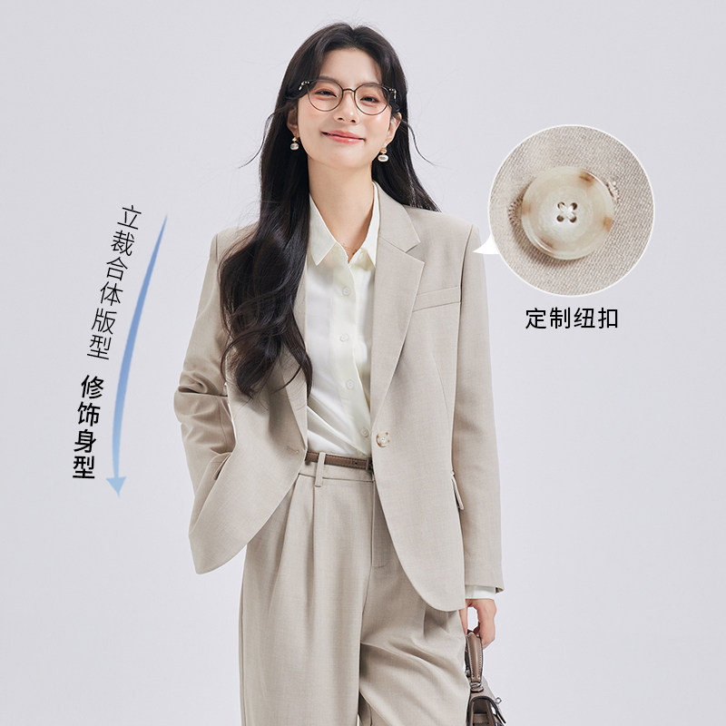 📚 达佳诗杏色西服外套女通勤休闲浅色职场西装套装面试职业西装套