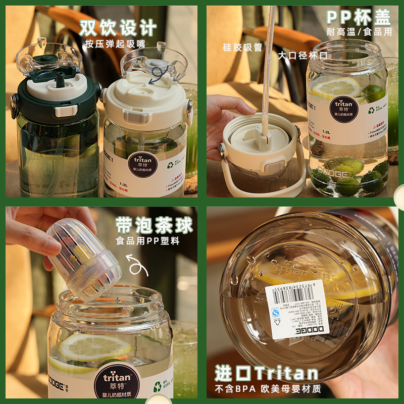 📚 大容量水杯男生运动夏天女高颜值泡茶水瓶学生防摔tritan户外水壶
