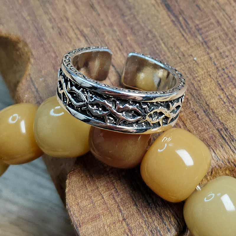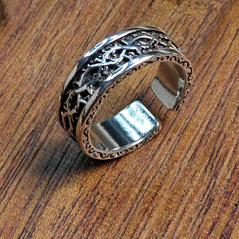 📚 蔷薇少女水银灯指环泰银荆棘戒指男女朋友礼物复古风时尚真红魔戒
