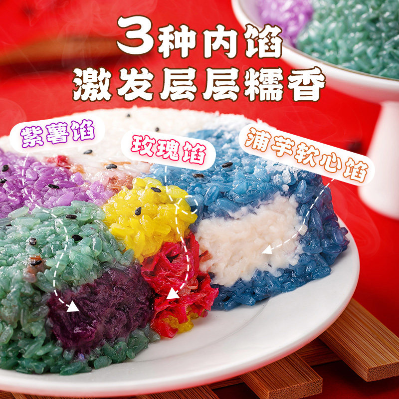 📚 滇园五彩玫瑰紫薯芋泥八宝饭500g云南特产年夜饭加热即食五彩糯米