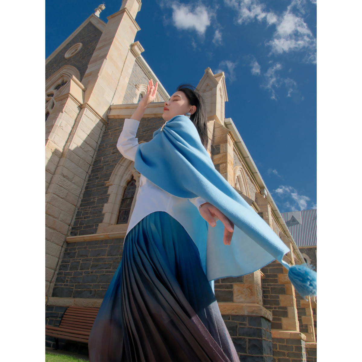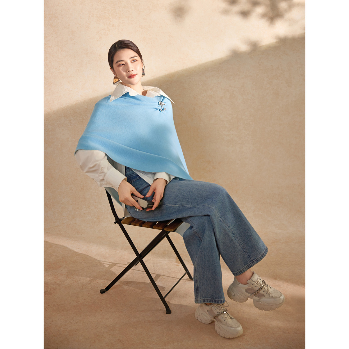 📚 【雨云氤氲】粉蓝衣橱2026春女装新款软糯轻肤宽松设计斗篷式毛衫