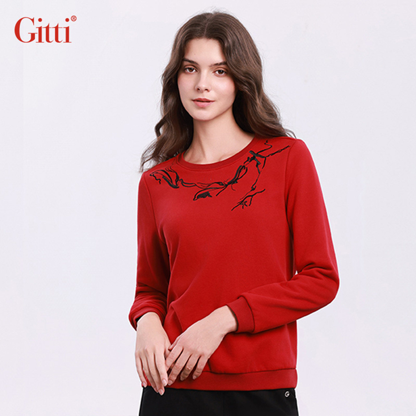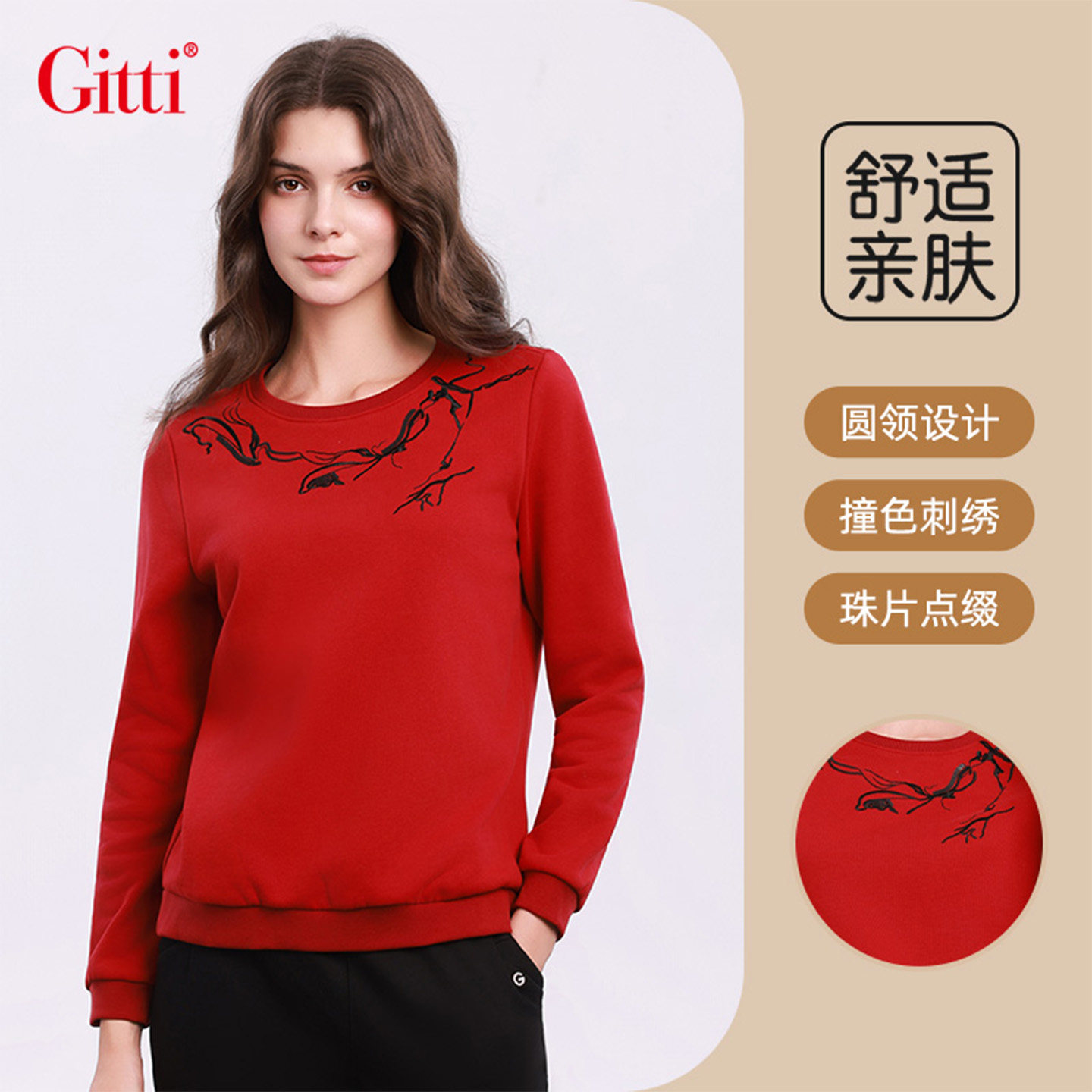📚 Gitti/吉蒂刺绣加绒加厚卫衣女宽松大码圆领棉针织上衣G255421