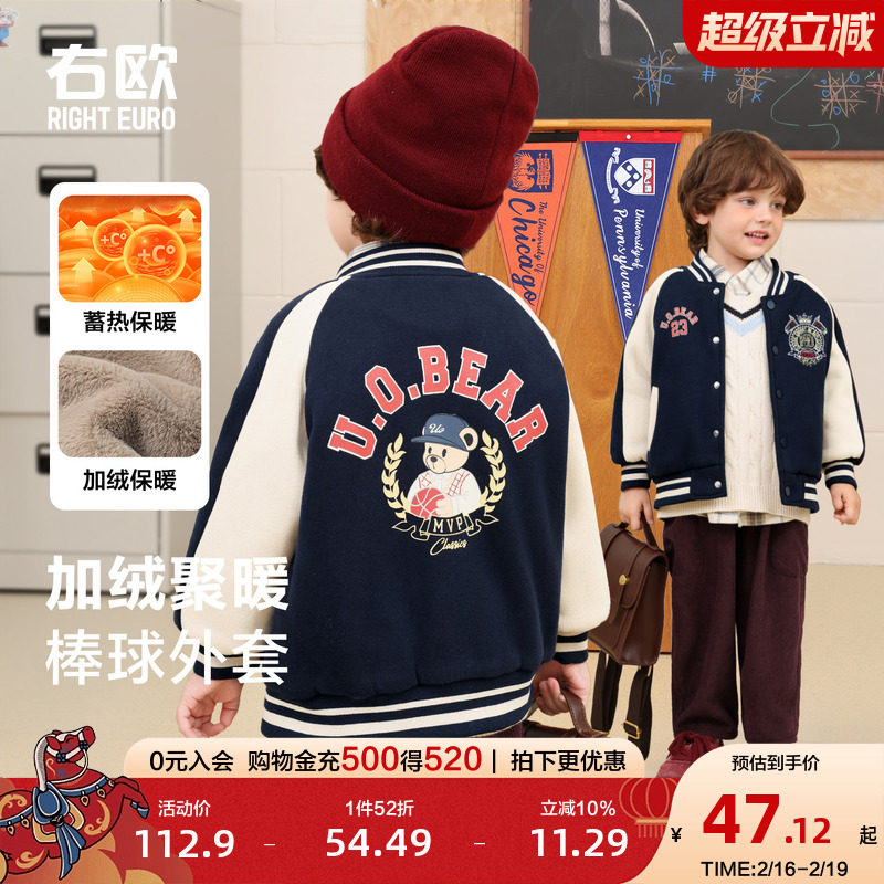 📚 右欧男童女童加绒棒球服外套学院风冬季新款童装儿童保暖厚款棉服