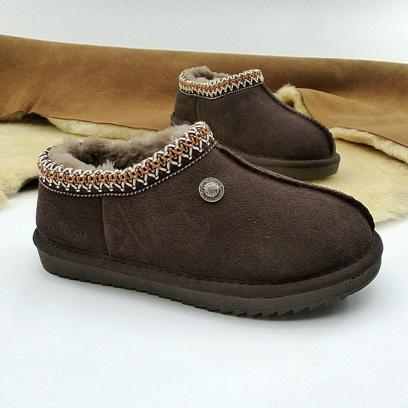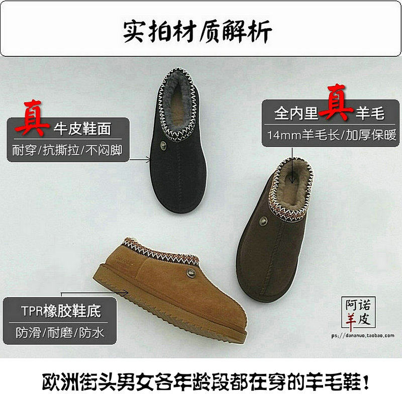 📚 欧洲站羊皮毛复古懒人鞋 男女低帮户外两穿防滑平底保暖棉鞋真皮