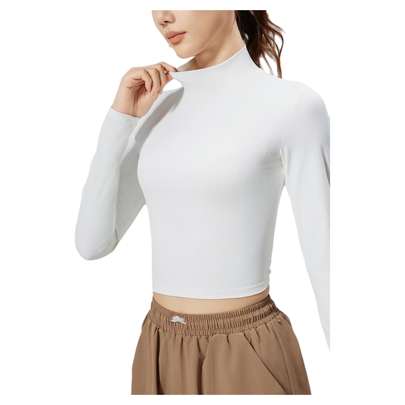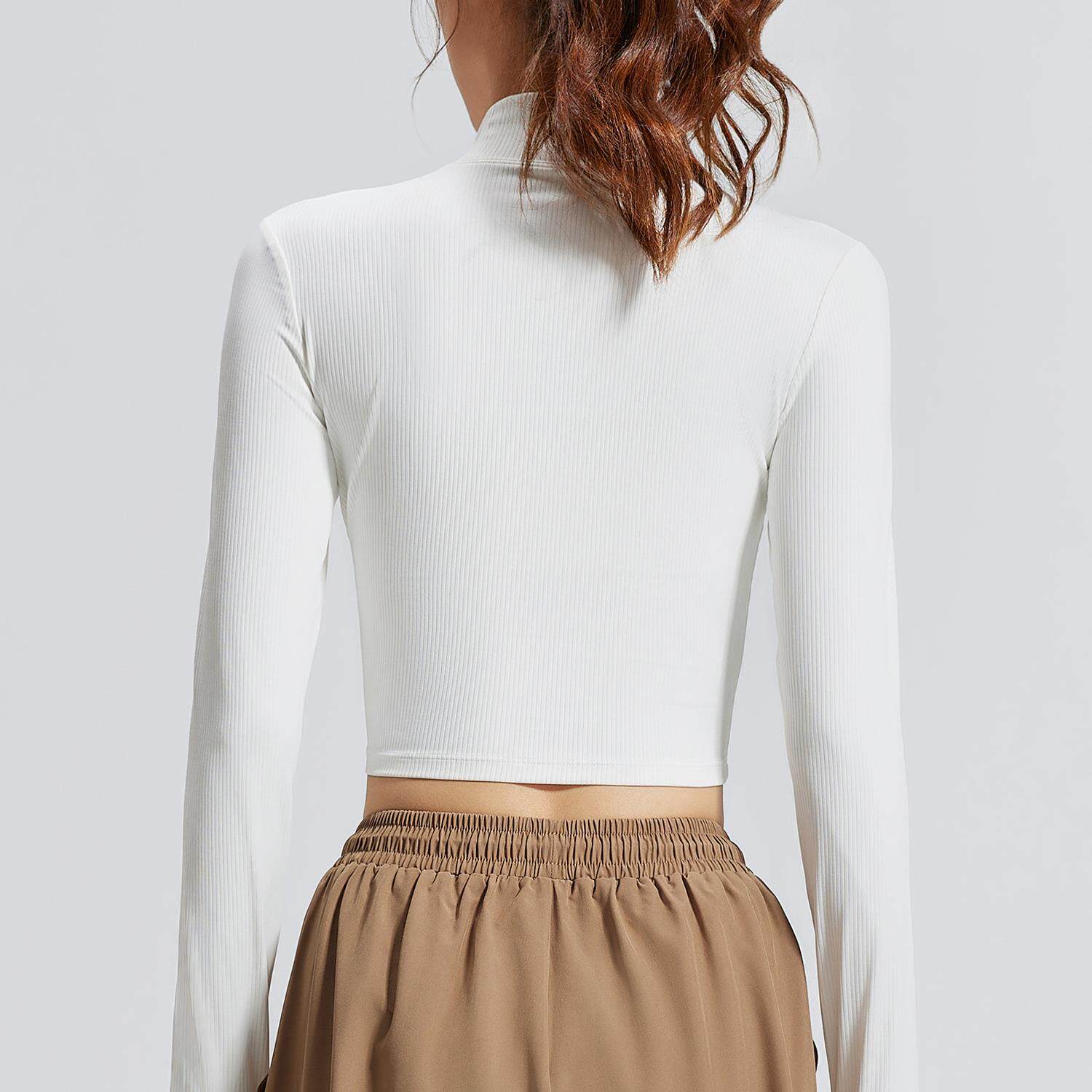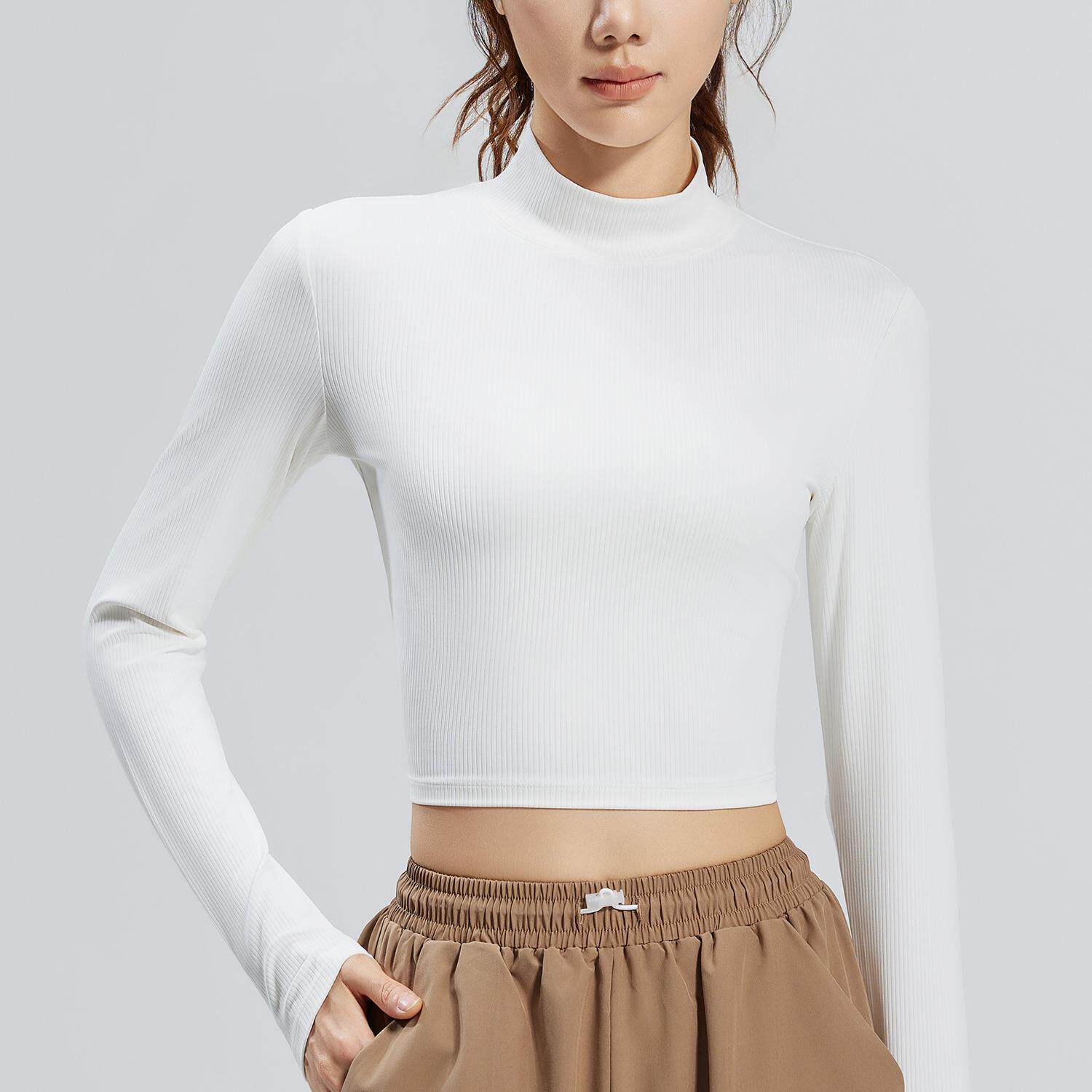 📚 澳洲*CSB新款条纹修身长袖时尚百搭小高领短款运动长袖瑜伽服
