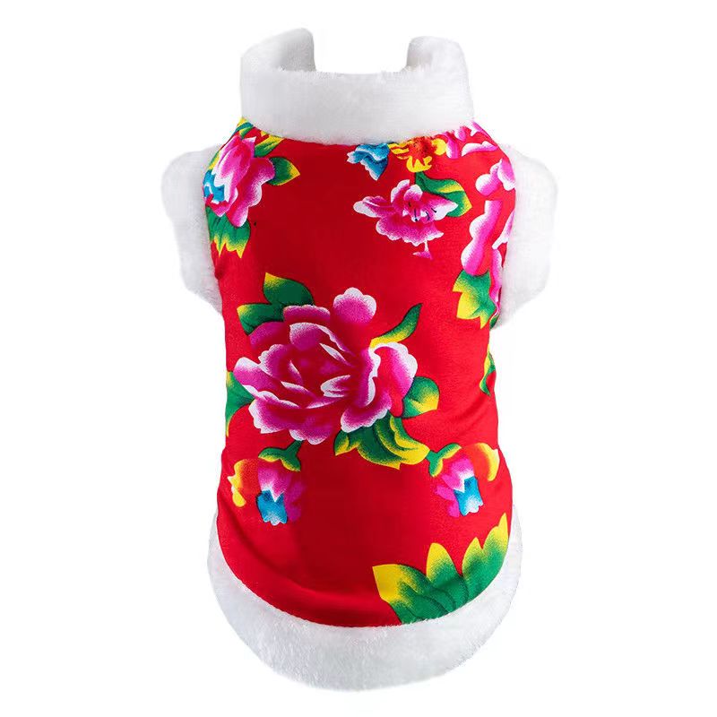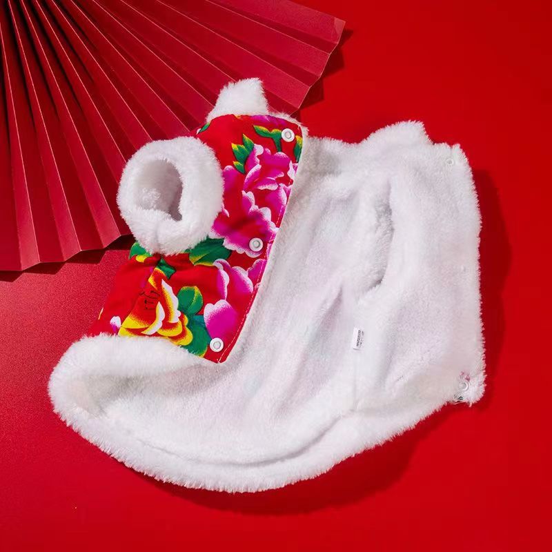 📚 小狗狗衣服冬季新年东北大花袄柯基泰迪比熊博美宠物猫咪棉衣