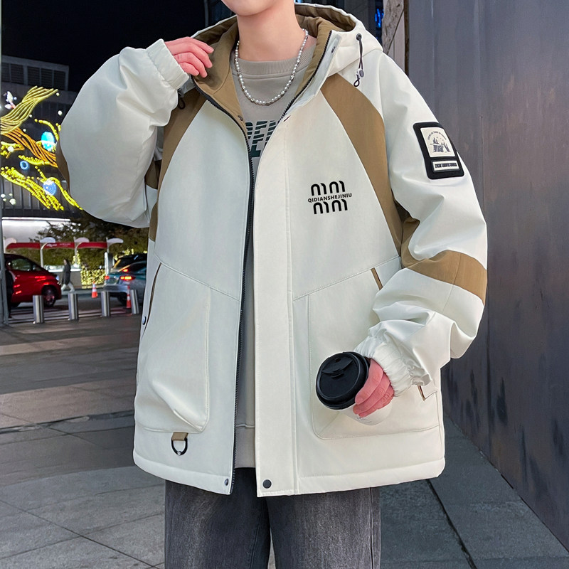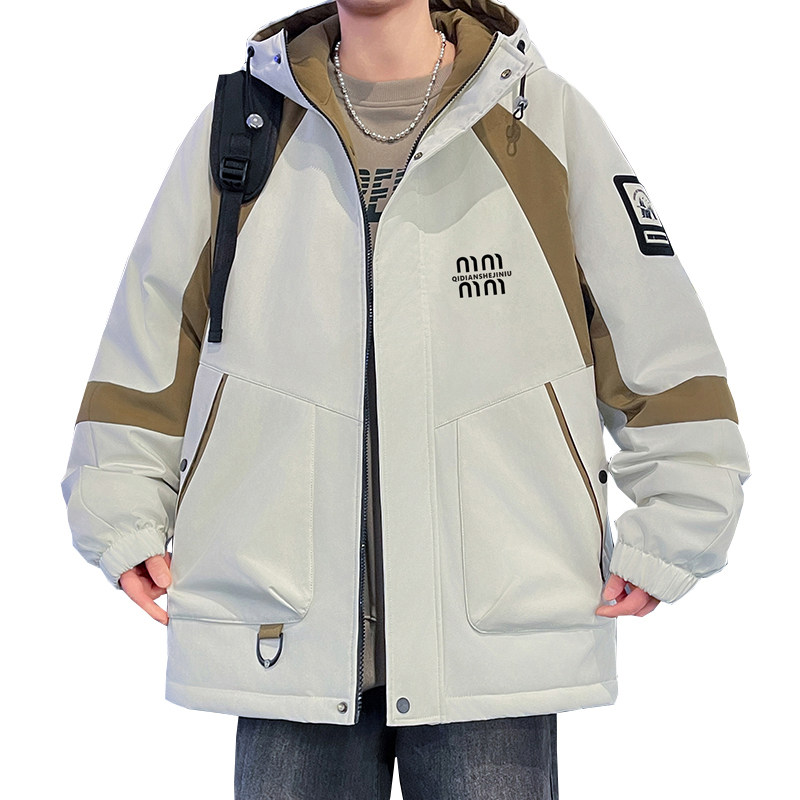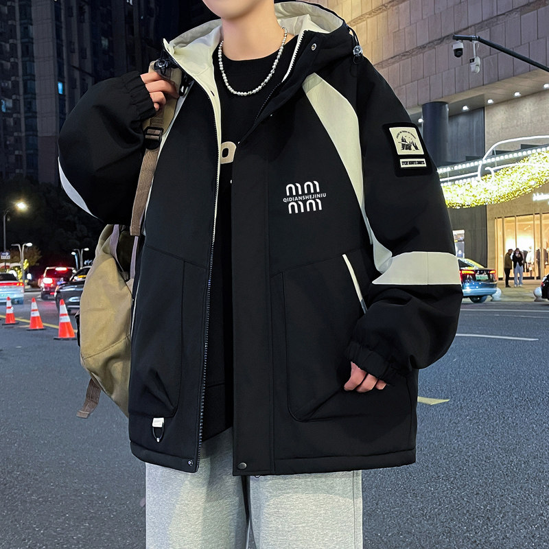 📚 冲锋衣男冬季加绒加厚青少年男士连帽棉衣夹克外套初中生防寒棉服