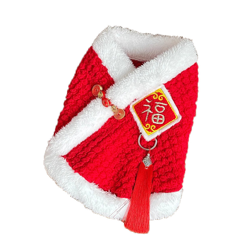 📚 狗狗猫咪衣服新年款冬装国风刺绣福字加绒保暖宠物泰迪毛绒款唐装