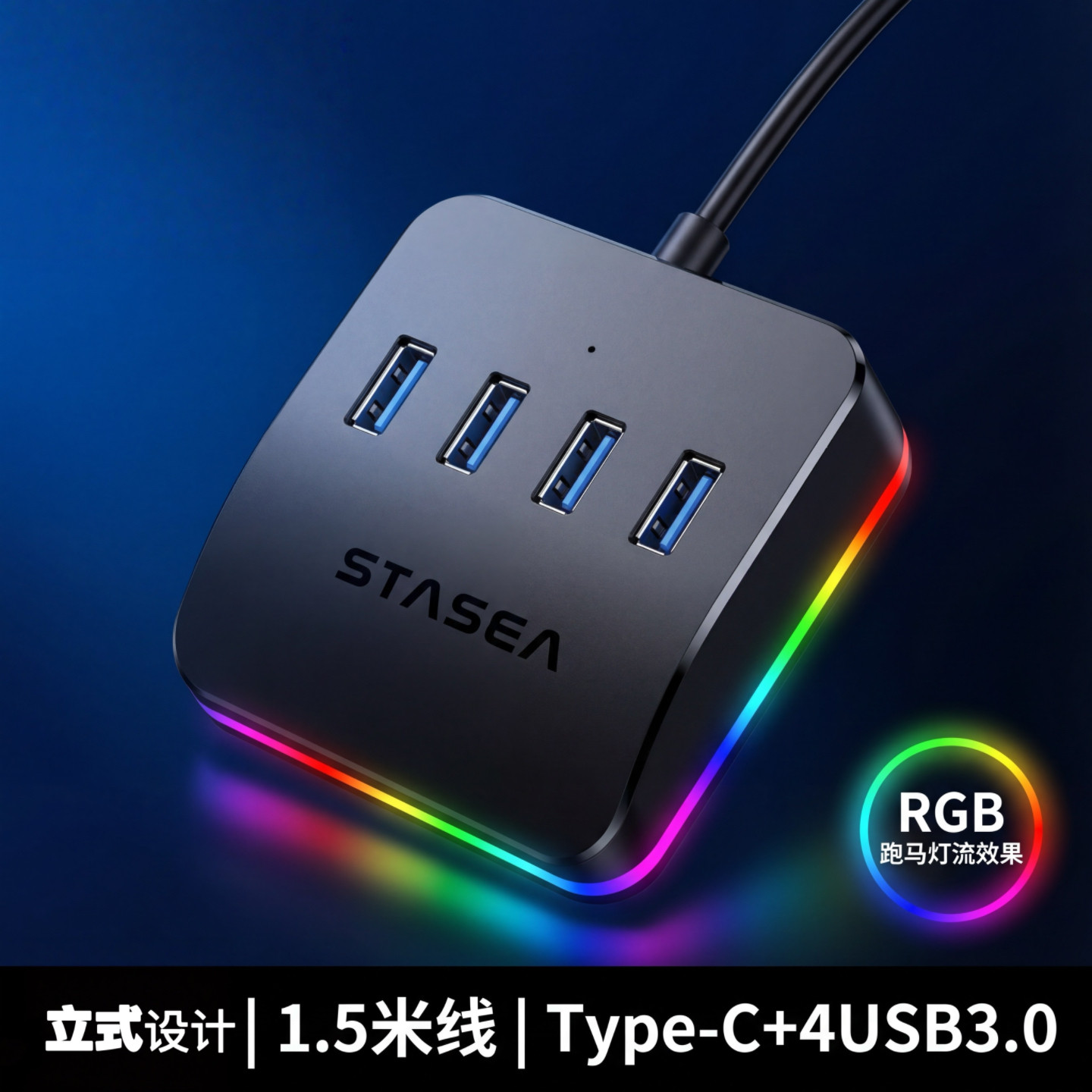 📚 首单直降1.5米USB扩展坞1拖5口 RGB炫彩立式底座多口狂魔极速传输