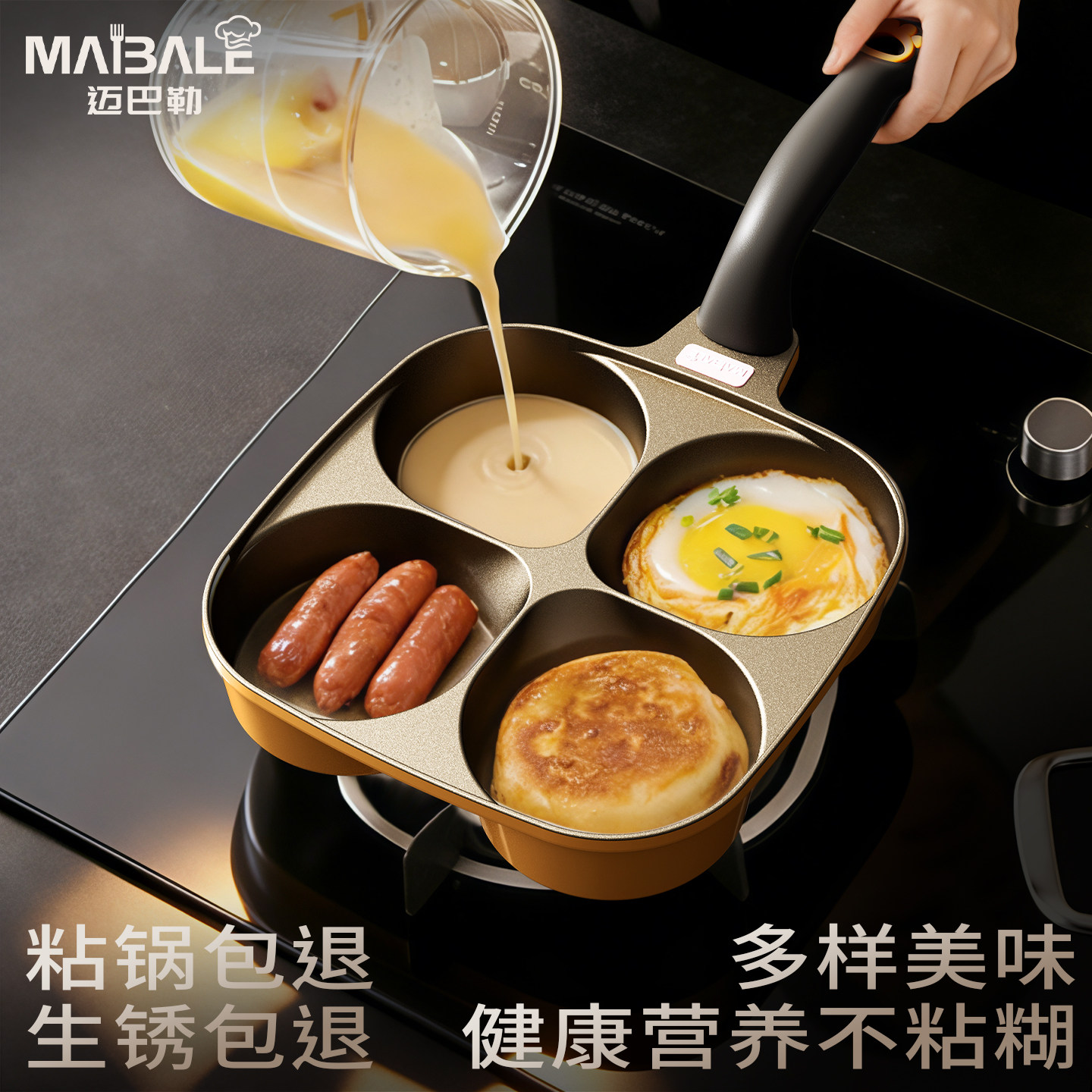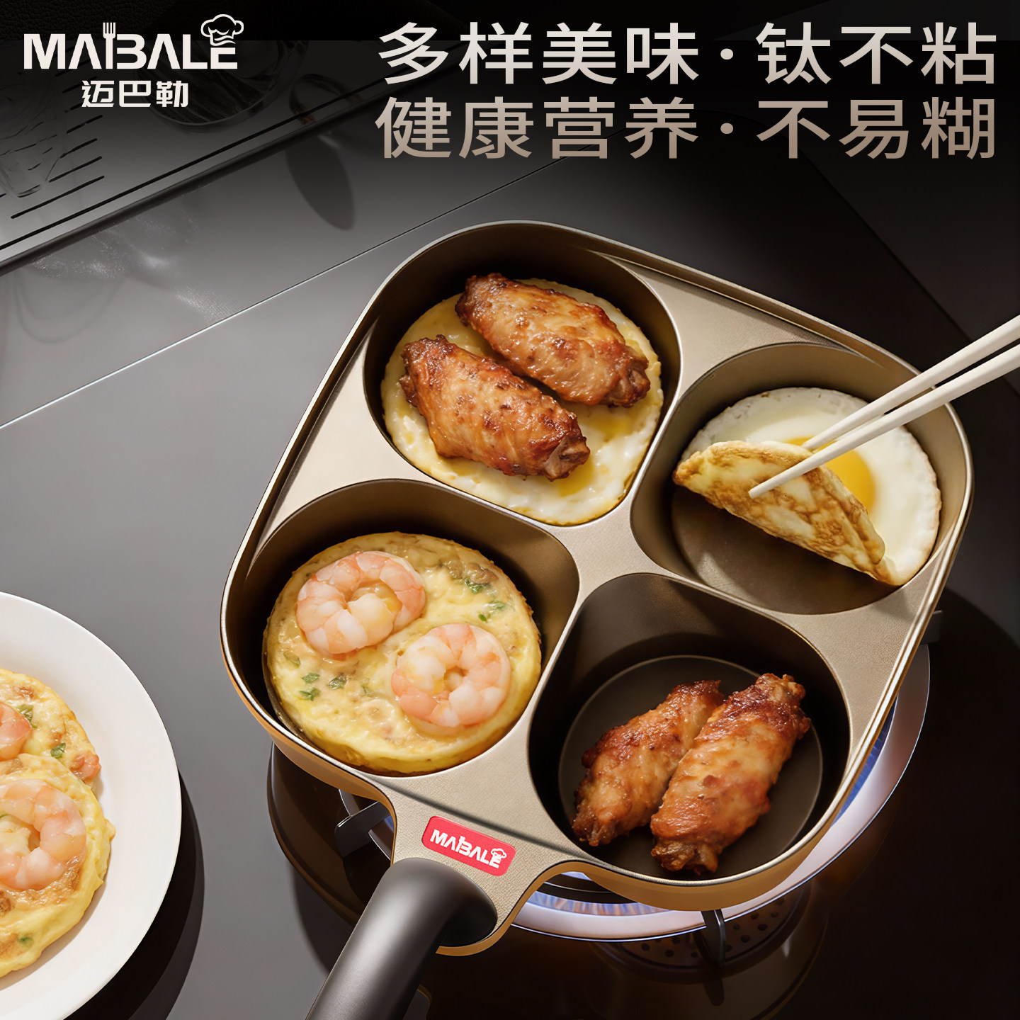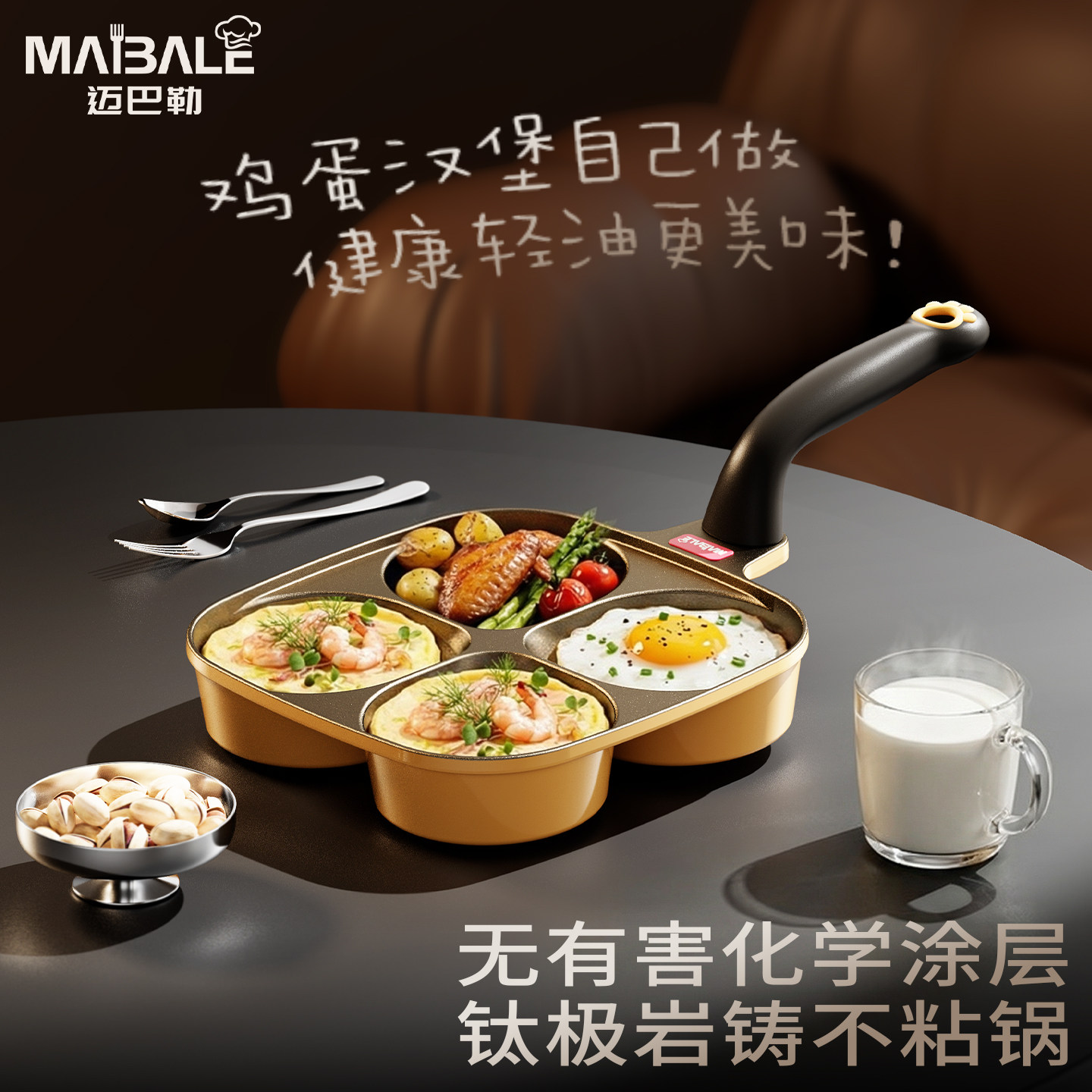 📚 迈巴勒新款四孔煎锅不粘锅蛋堡锅神器家用加深肉蛋堡早餐锅煎蛋锅