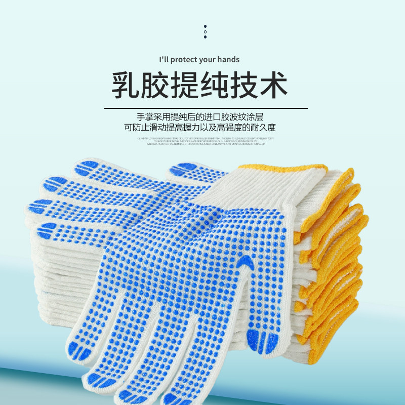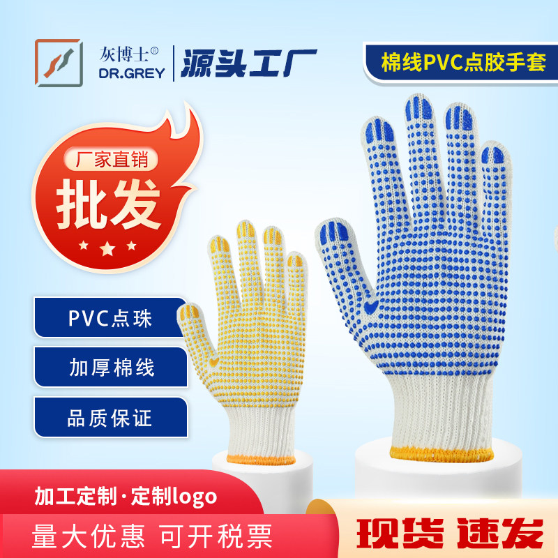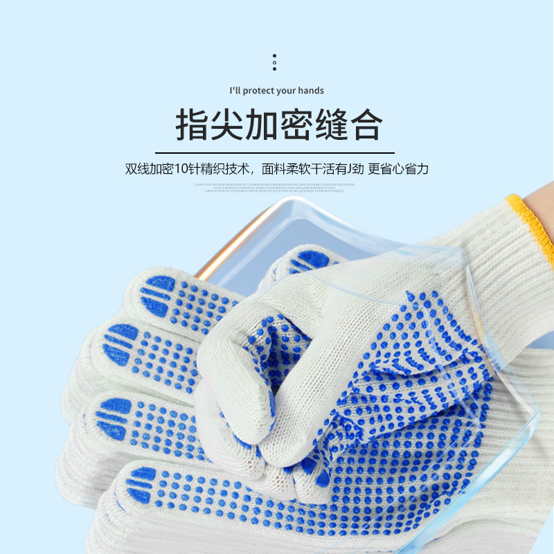 📚 劳保手套批发10针棉线PVC点胶手套防滑胶点工地干活手套毛纺点珠
