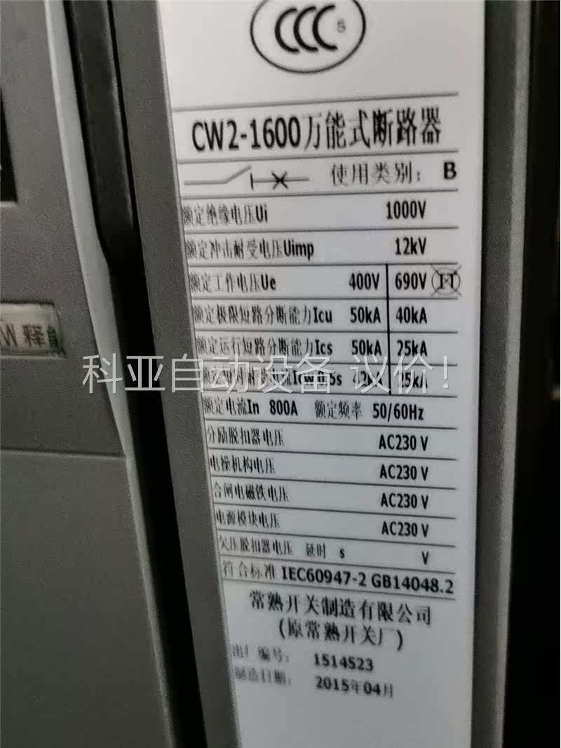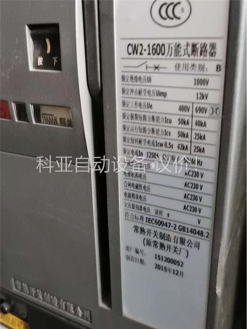 📚 常熟开关厂CW2-1600,3P抽屉式,正品拆机的,安装未使(议价)