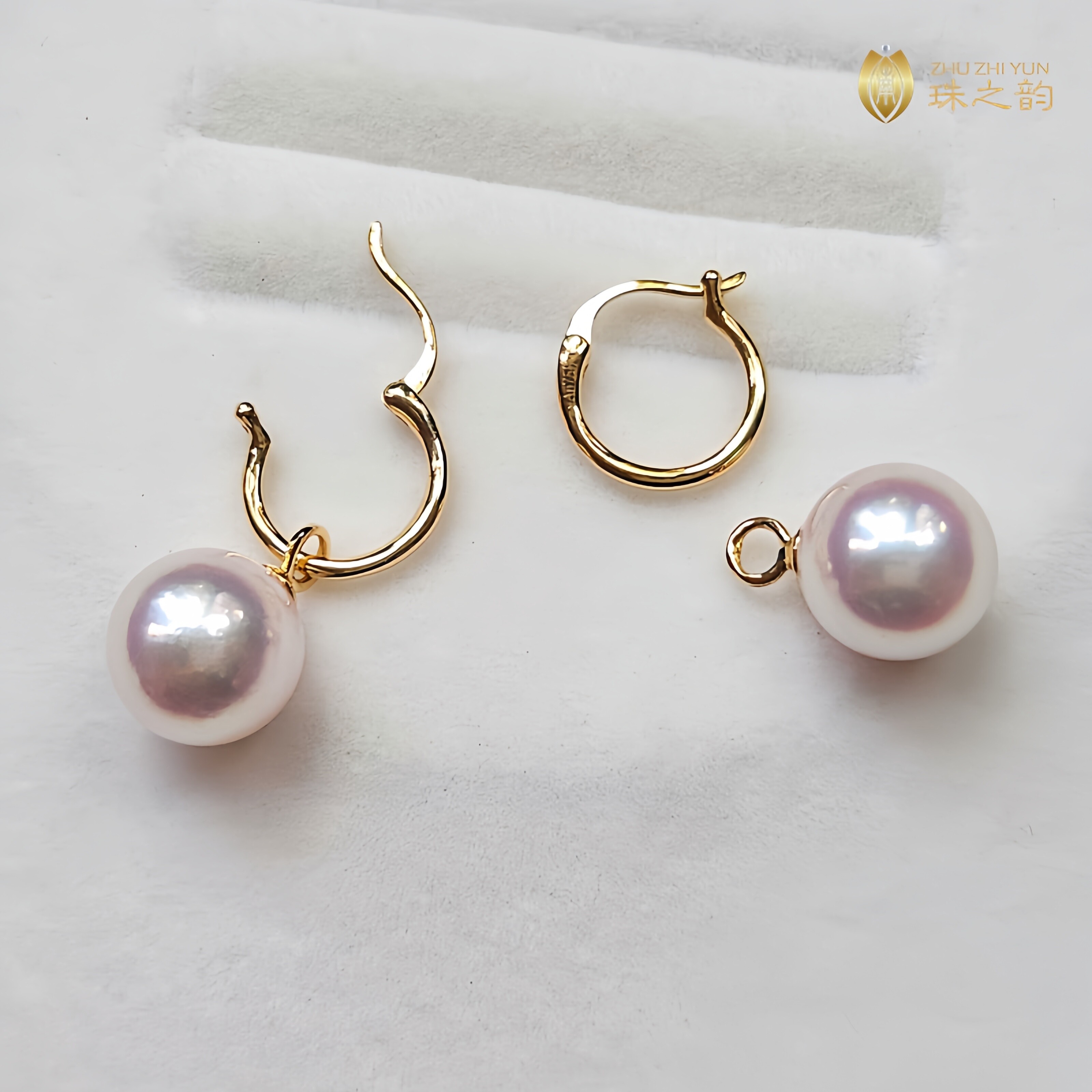 📚 极光天女akoya日本海水珍珠耳环耳扣18K金加厚耳钉耳饰正圆镜面光