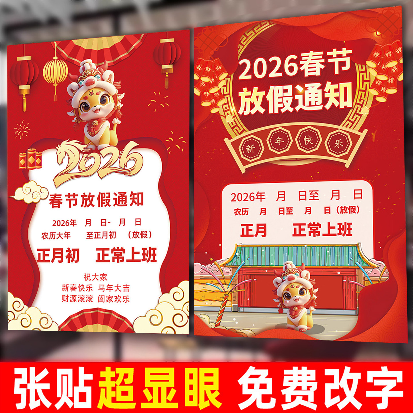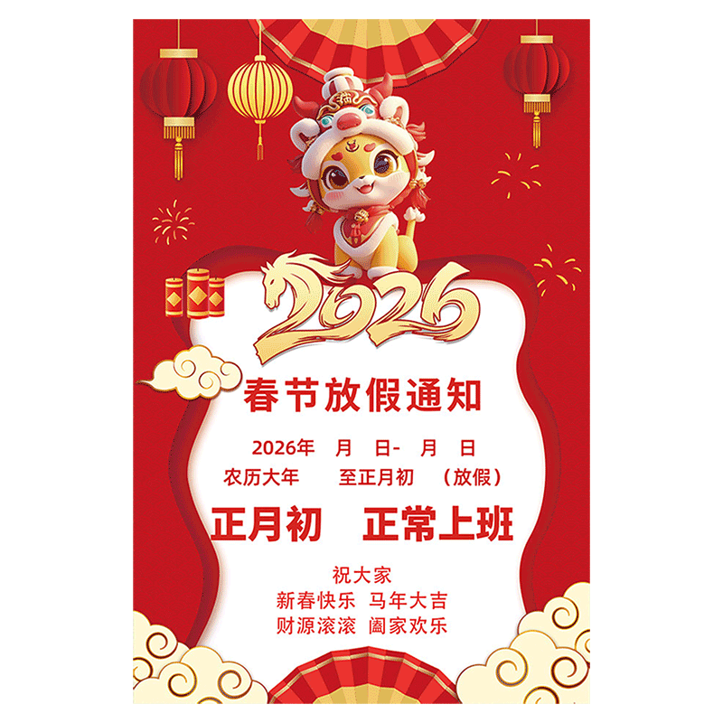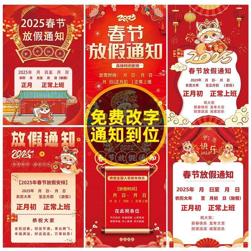 📚 2026年春节放假通知海报墙贴玻璃门广告贴纸美容美发店过年放假公告牌理发店涨价通知海报春节不打烊告示海报