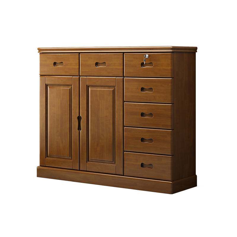 📚 中式实木卧室五斗柜带门抽屉柜多功能组装带锁小收纳柜储物柜立柜