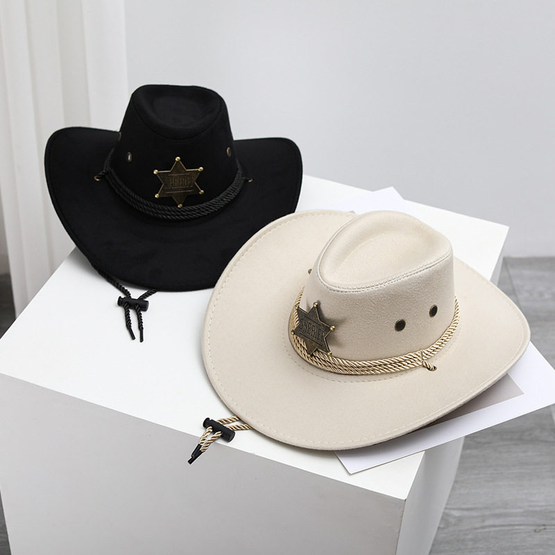 📚 西部牛仔 复古治安官警长帽子男女骑马旅游钓鱼遮阳防晒露营帽