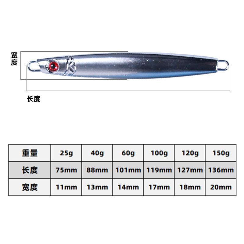 📚 40g-150g海钓船钓马鲛鲅鱼海狼石斑速沉快抽电镀铁板路亚饵假饵
