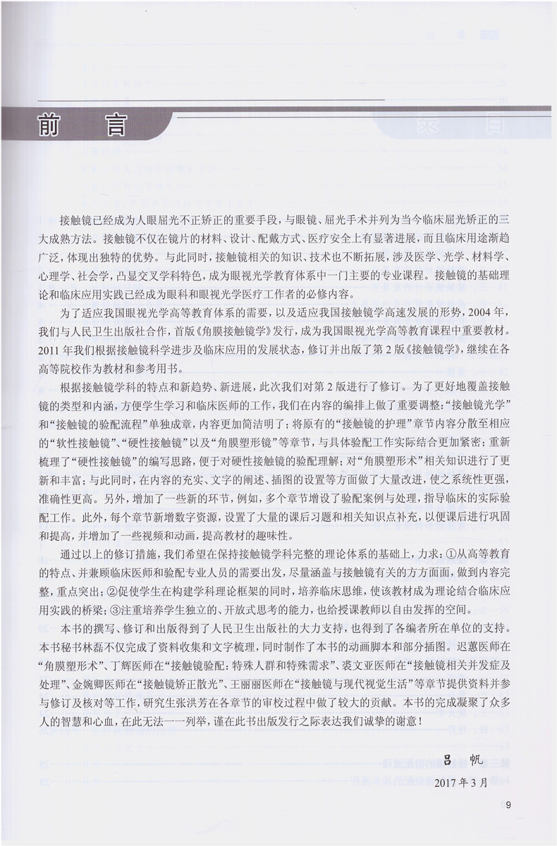 📚 正版现货 接触镜学 第3版(十三五/本科/供眼视光学专业用)吕帆主编 人民卫生出版社