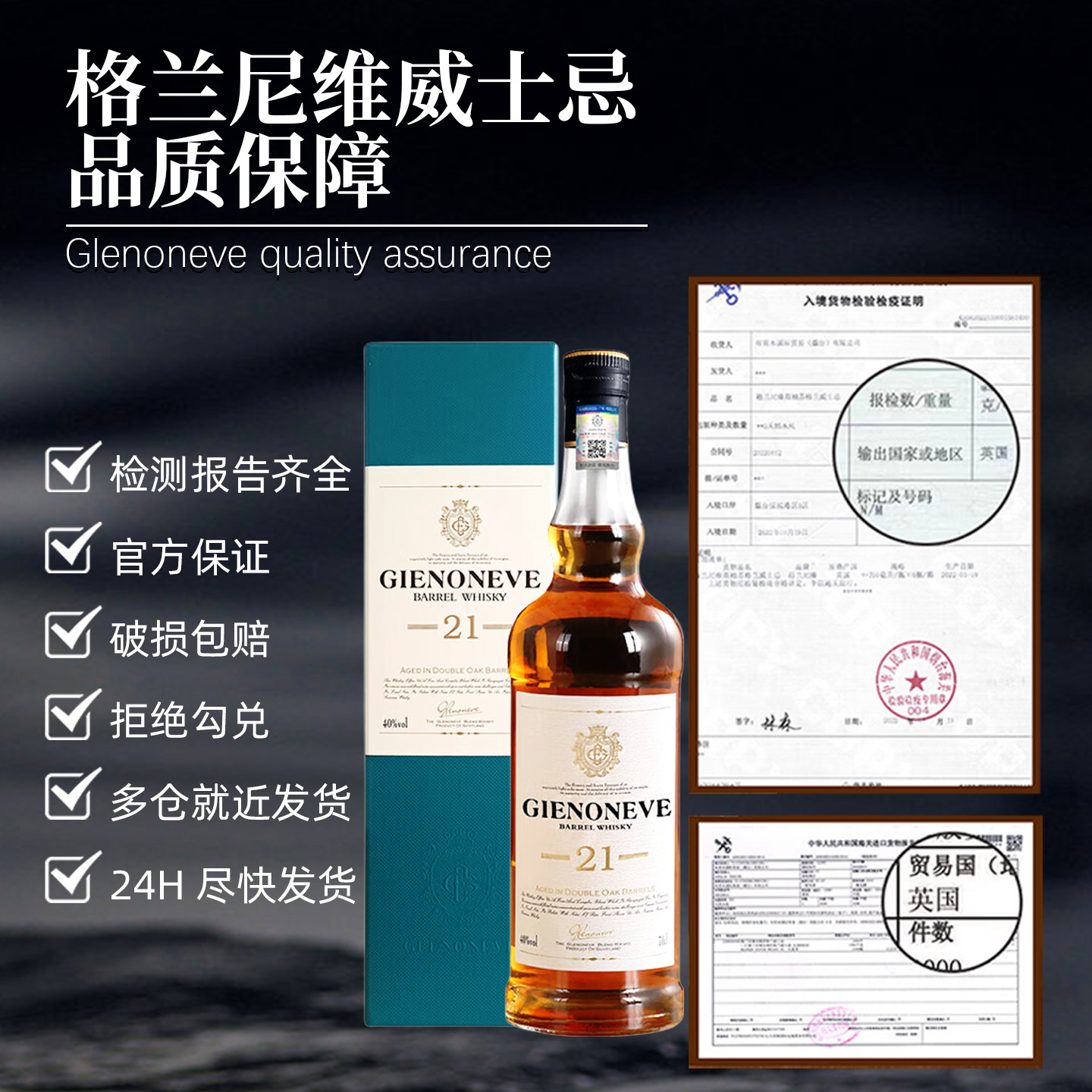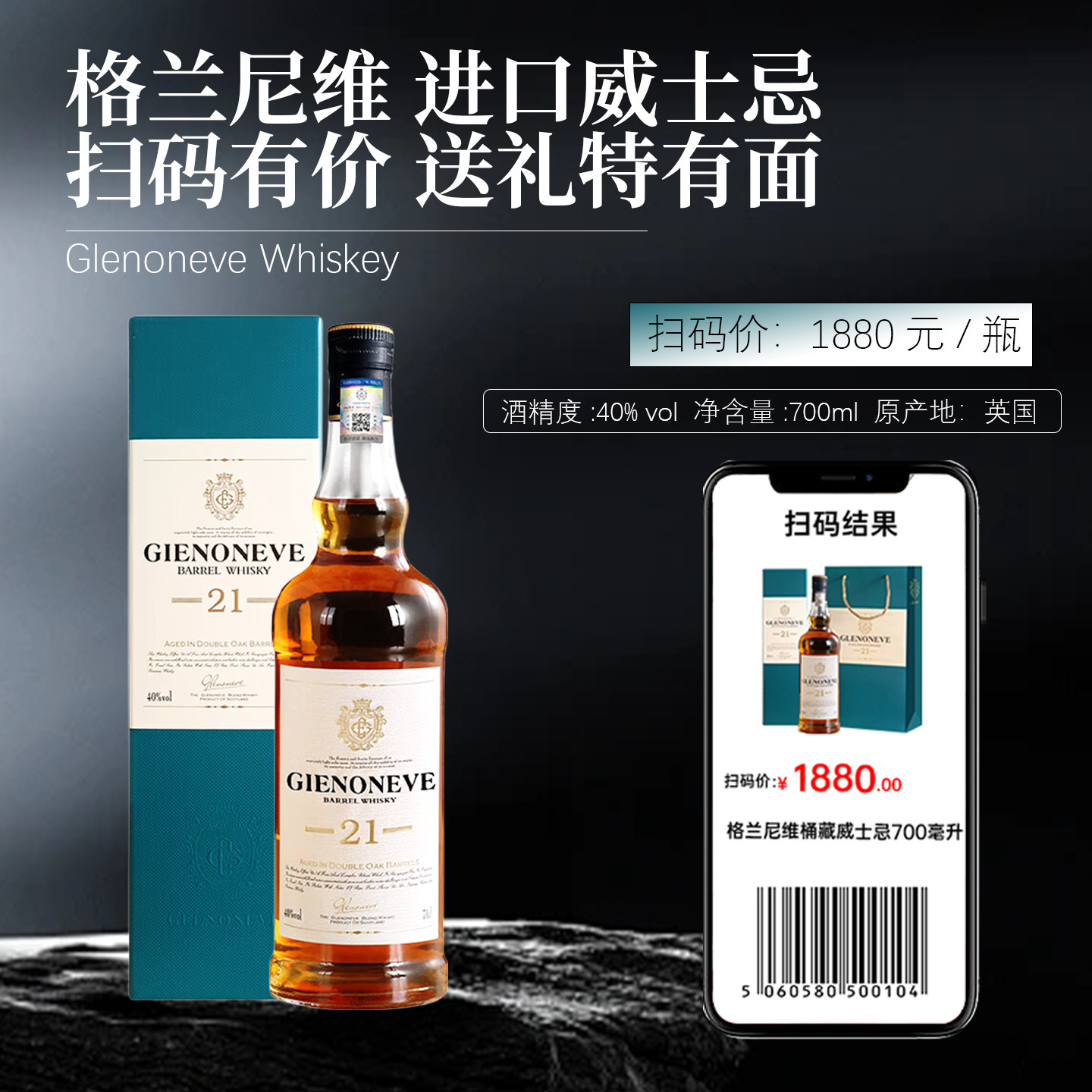 📚 英国进口格兰尼维桶藏洋酒威士忌21陈酿烈酒40度正品礼盒装700ML