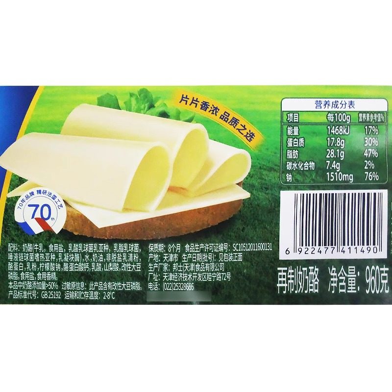 📚 百吉福芝士片960g 三明治汉堡车打奶酪片白片 80片装西餐烘焙DIY