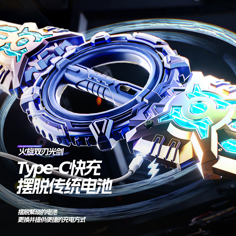 📚 爆款男孩玩具火旋剑双刃伸缩旋转二合一激光剑儿童发光激光剑礼物