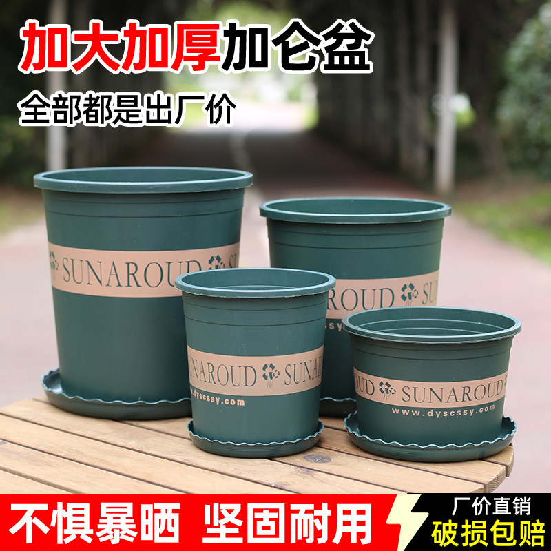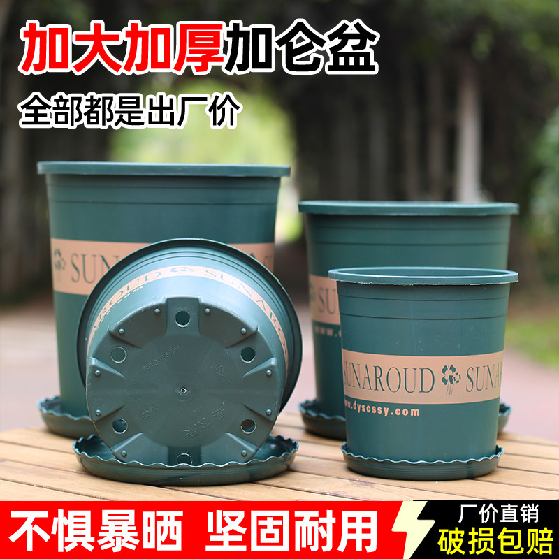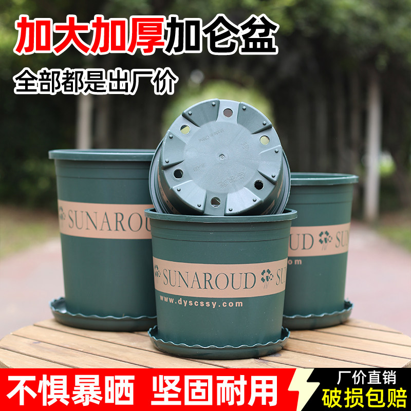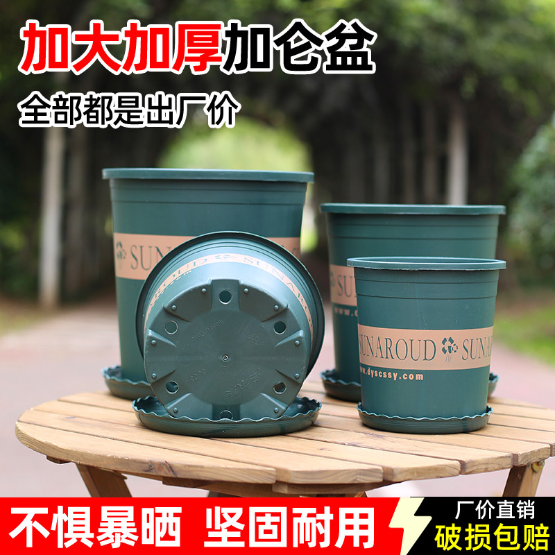 📚 加厚塑料树脂圆形花盆控根透气耐用绿植盆栽加仑盆带托盘种菜种植