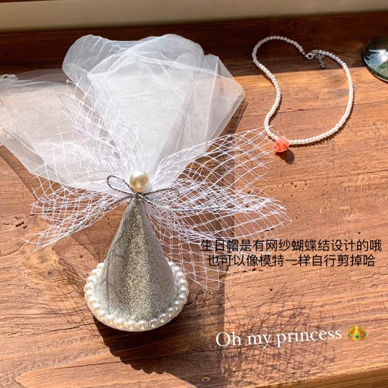 📚 生日仪式感 银色纱纱女童生日帽子装扮儿童发夹男女孩头饰发饰