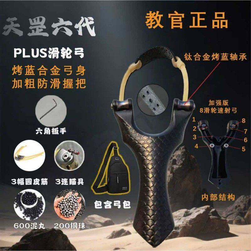 📚 天罡6代内置滑轮弹弓成人户外射击专用实战大威力高精度滑动弹架